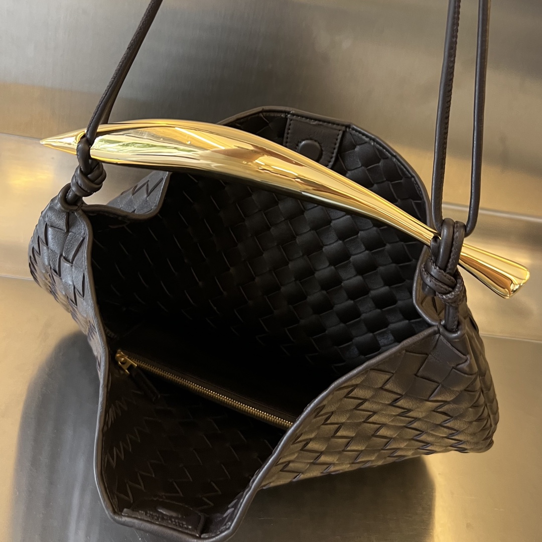 보테가의 샤딩이 반달백은 한층 더 넓어진 디자인으로 실용성을 더했습니다.