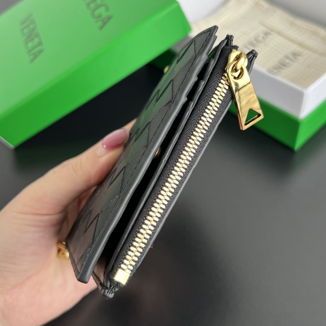 보테가 (징) 솔스티스 시리즈 짧은 지갑 클래식 편직 가죽 금속 디테일 블랙 788055 보테가 (징) 솔스티스 시리즈 짧은 지갑 클래식 편직 가죽 금속 디테일 블랙 788055