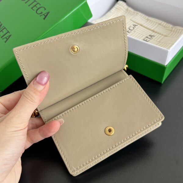 부드럽고 광택이 있는 소가죽 소재로 제작된 카드 지갑입니다.