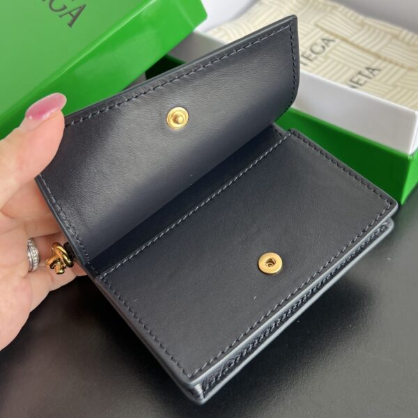 부드럽고 광택이 있는 소가죽 소재로 제작된 카드 지갑입니다.