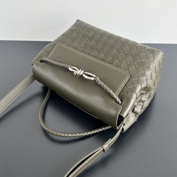 반광택의 외관과 자연스러운 엮임 텍스처가 조화를 이루며, Knot 실버 버클이 포인트를 더합니다.