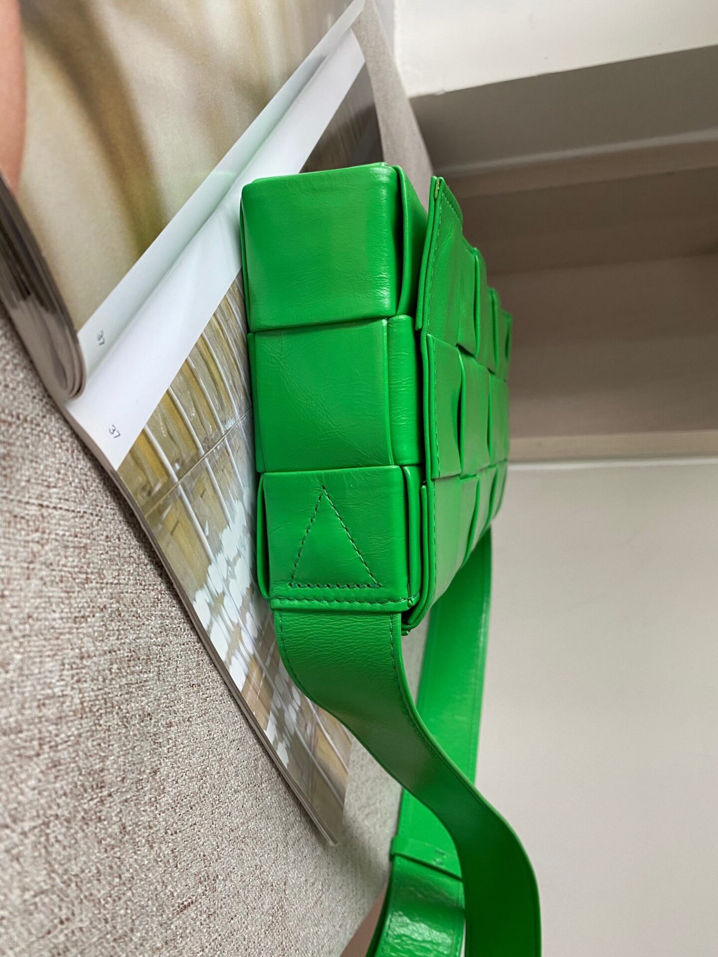 보테가의 스트레치 카세트 슬링백은 남녀 모두에게 어울리는 매력적인 디자인입니다.