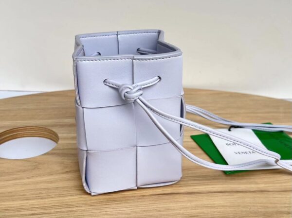 부드러운 화이트 컬러와 클래식한 엮음 디자인이 조화를 이루어 세련된 느낌을 줍니다. 이 가방은 작지만 실용적이며, 일상에서 다양한 스타일로 활용할 수 있습니다.