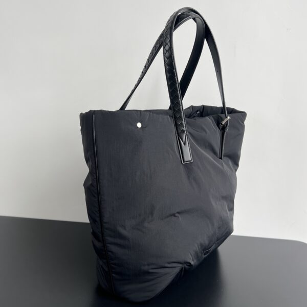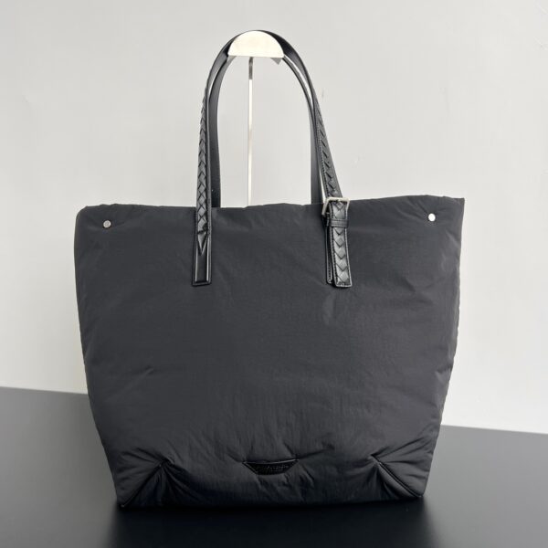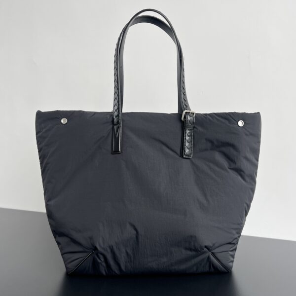 부드러운 나일론 소재로 제작된 경량 토트백입니다.