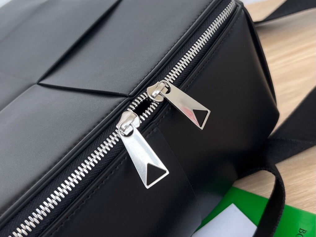 보테가의 신형 사각 편직 백팩이 새롭게 출시되었습니다. 고급스러운 블랙 컬러와 세련된 수직 편직 디자인이 특징으로, 현대적인 미감을 자아냅니다.