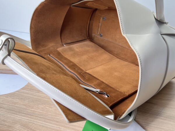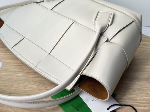 보테가의 아르코 토트백은 독특한 디자인으로 시선을 사로잡습니다. 세련된 베이지 컬러와 함께 고급스러운 가죽 소재가 조화를 이루어, 어떤 룩에도 잘 어울립니다.