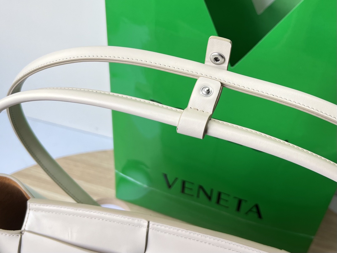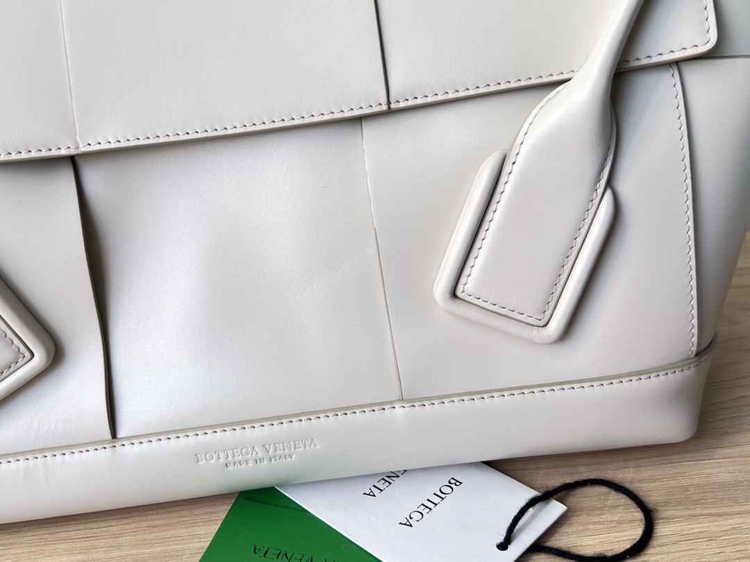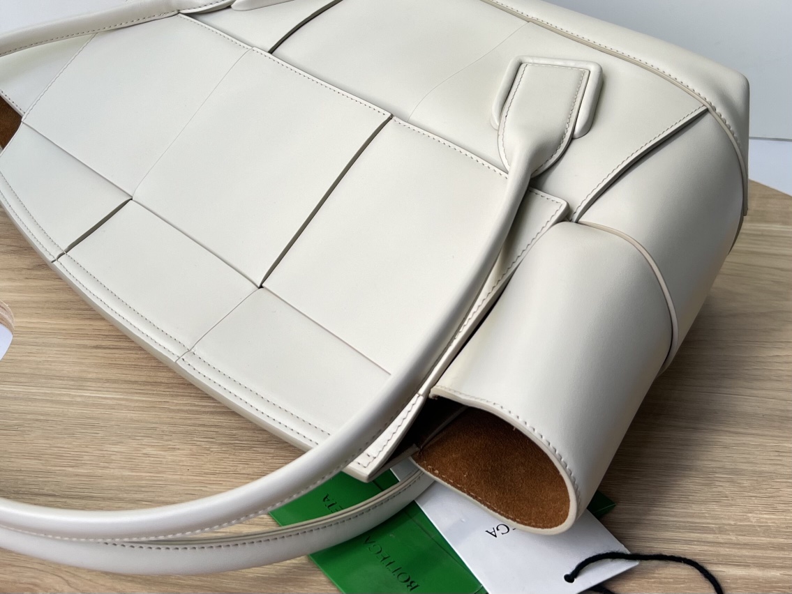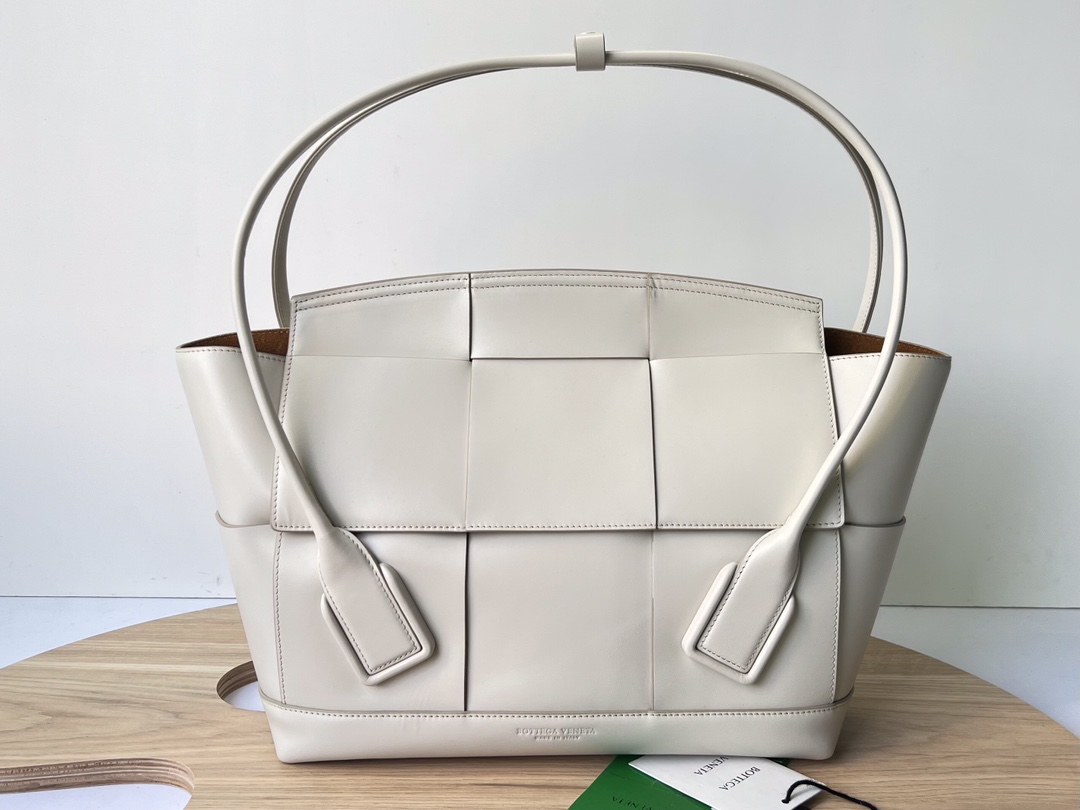 보테가의 아르코 토트백은 독특한 디자인으로 시선을 사로잡습니다. 세련된 베이지 컬러와 함께 고급스러운 가죽 소재가 조화를 이루어, 어떤 룩에도 잘 어울립니다.