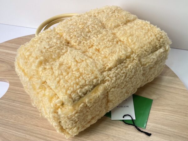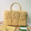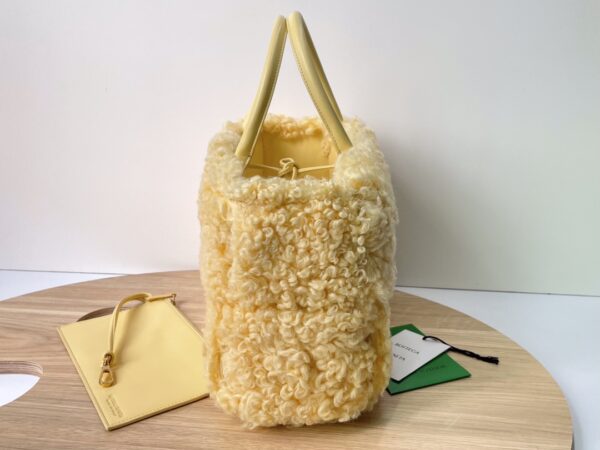 부드러운 양모 소재로 제작된 아르코 토트백입니다. 자연스러운 곱슬머리 같은 질감이 특징이며, 손에 쥐었을 때의 감촉이 매우 부드럽고 편안합니다.