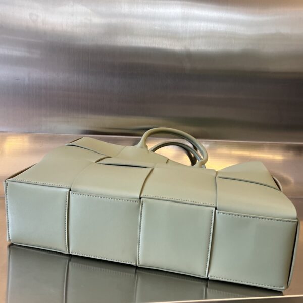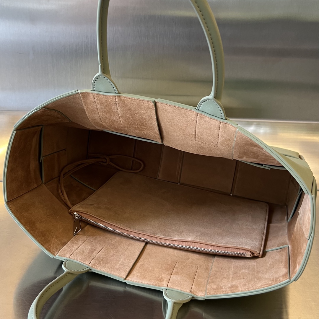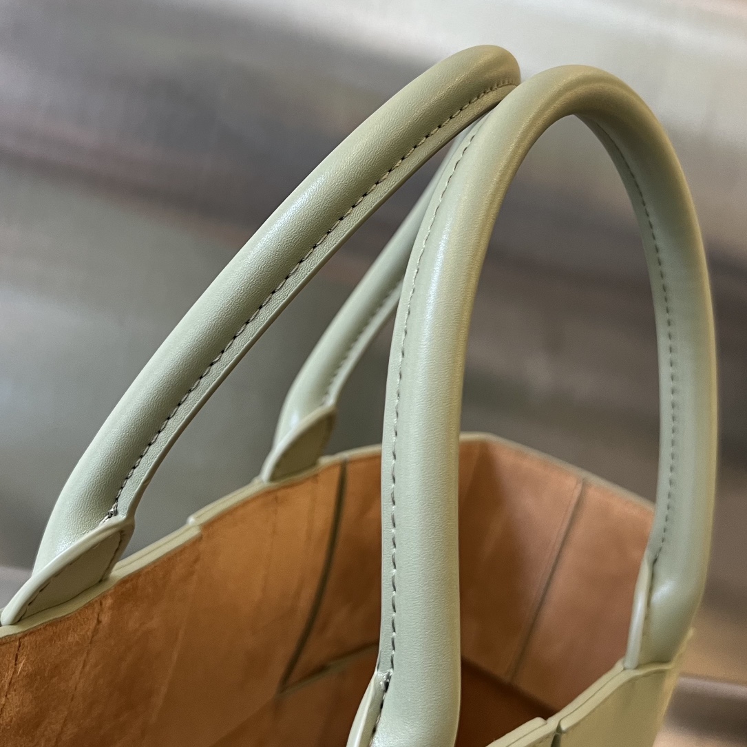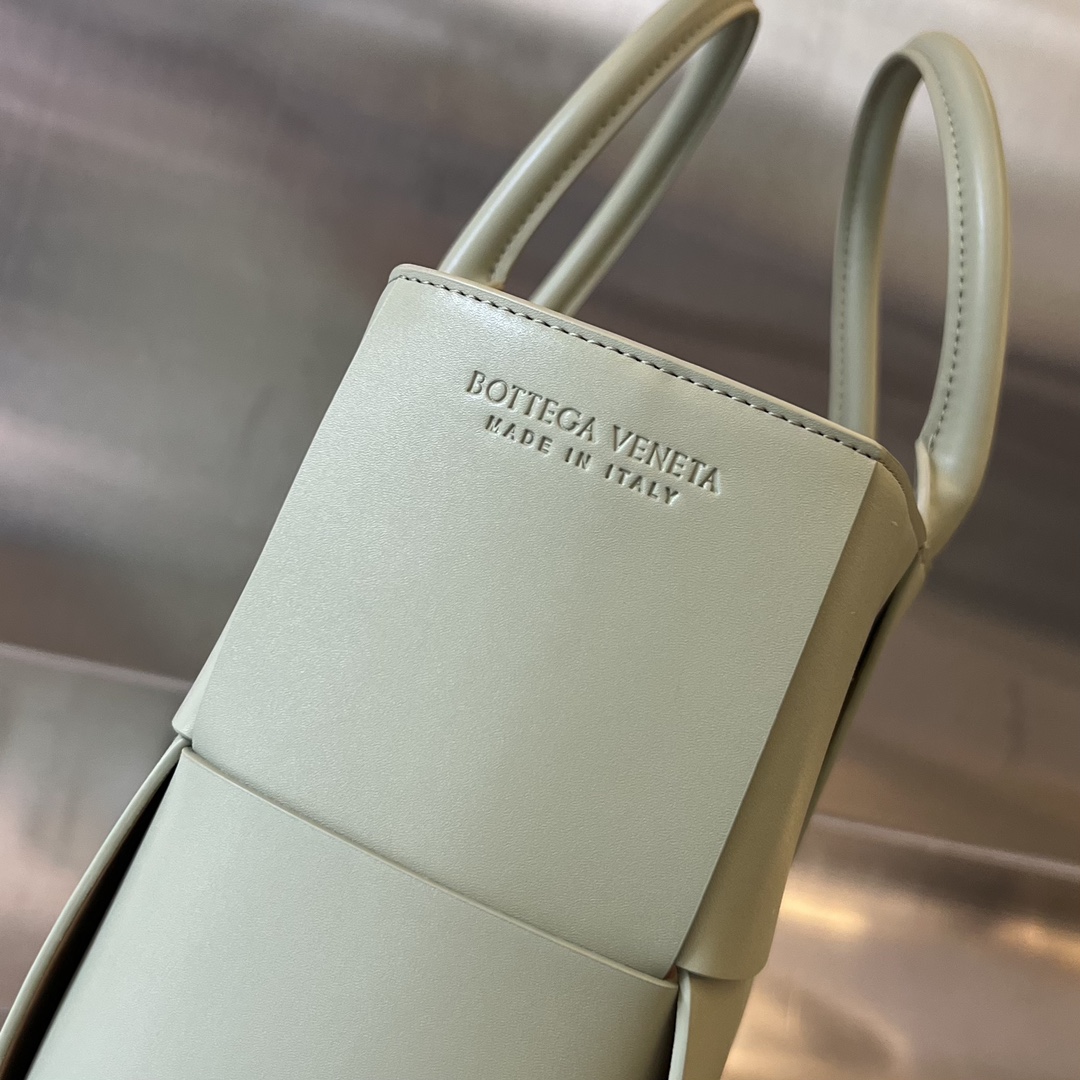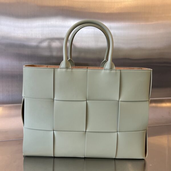 부드러운 소가죽으로 제작된 아르코 토트 핸드백입니다. 인트레치오 패턴이 돋보이며, 고급스러운 느낌을 줍니다.