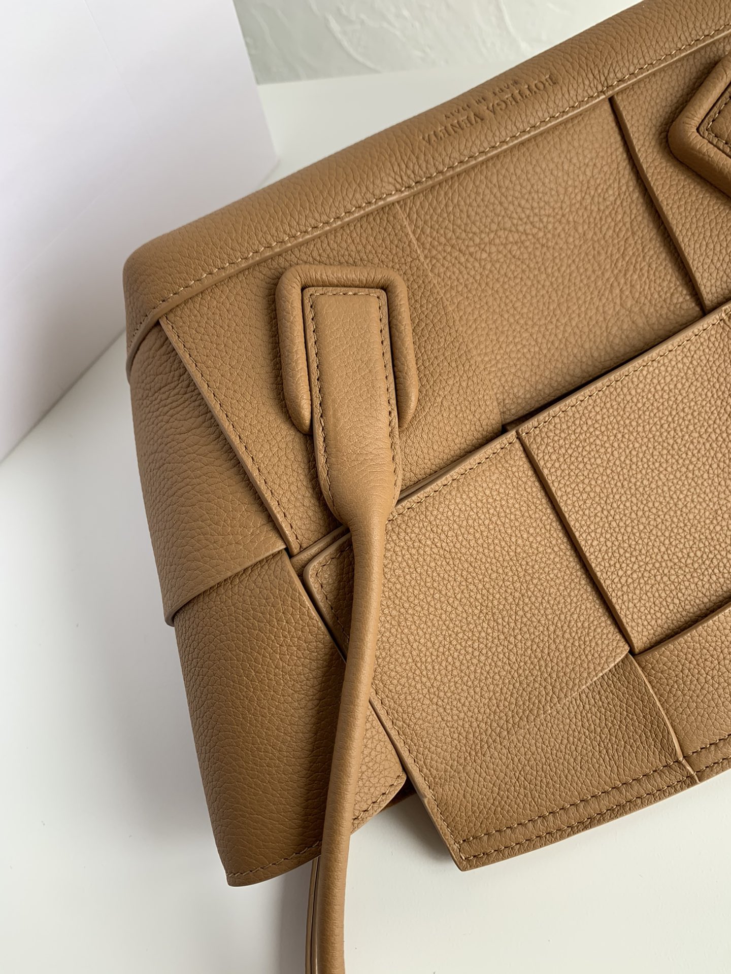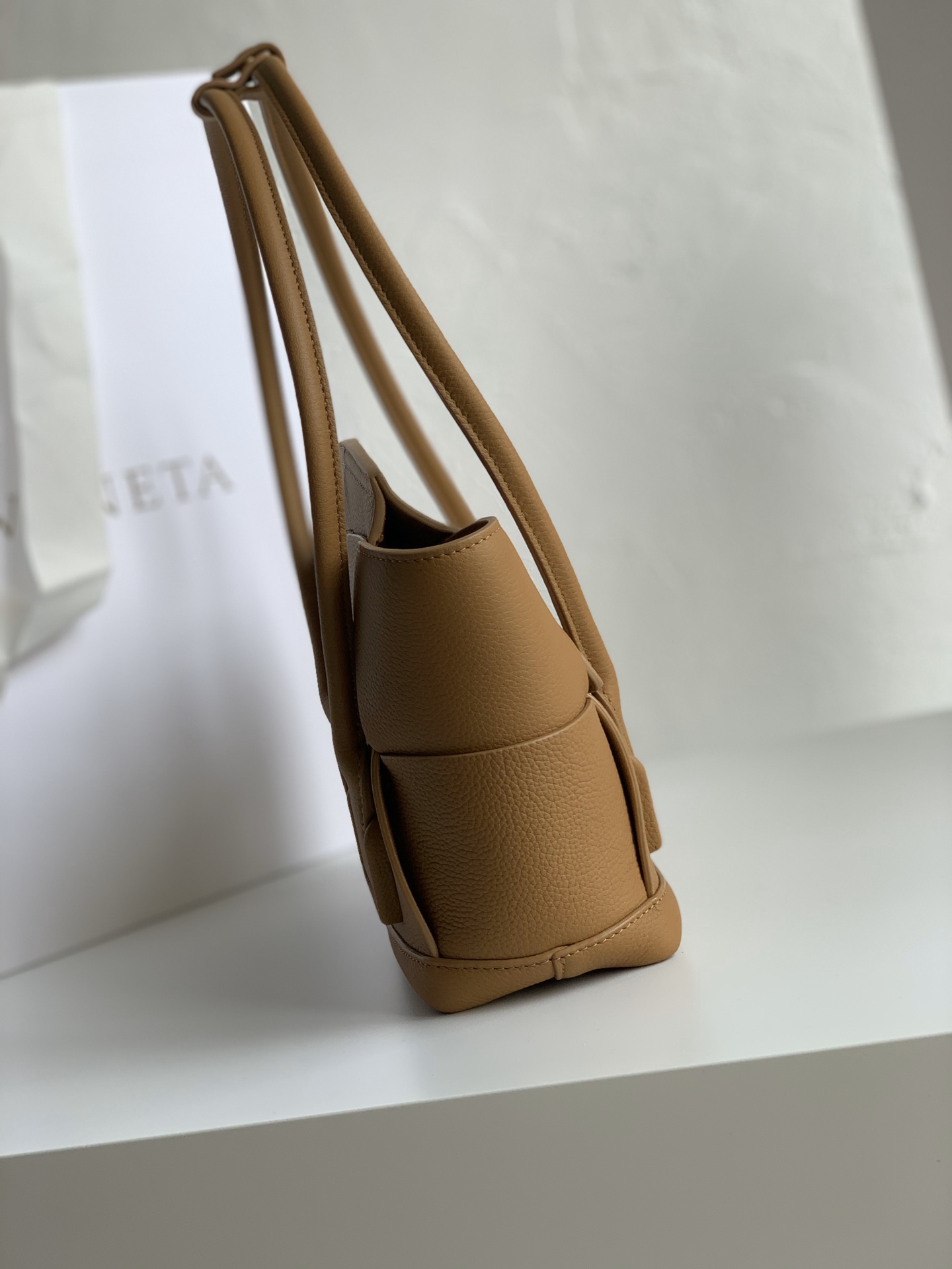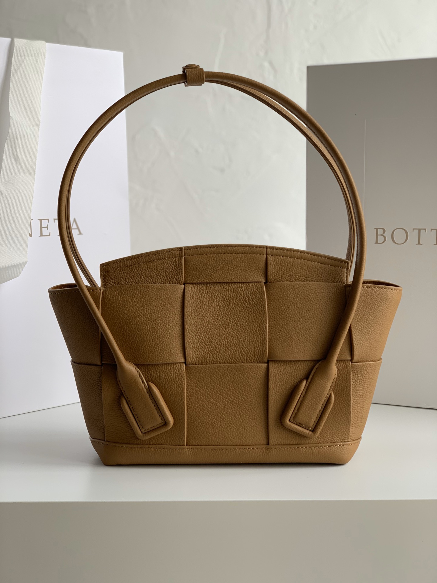 보테가의 아르코 33 토트백은 고급스러운 라이트 브라운 색상으로, 어떤 스타일에도 잘 어울립니다.