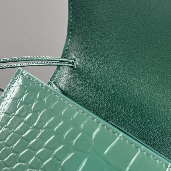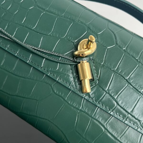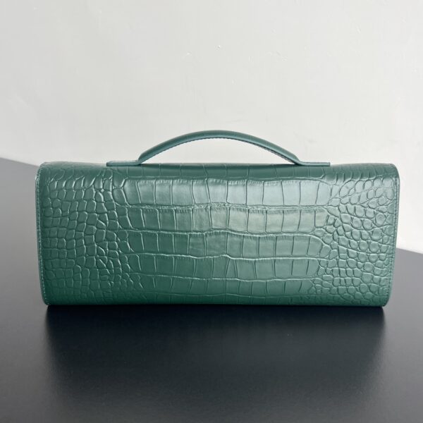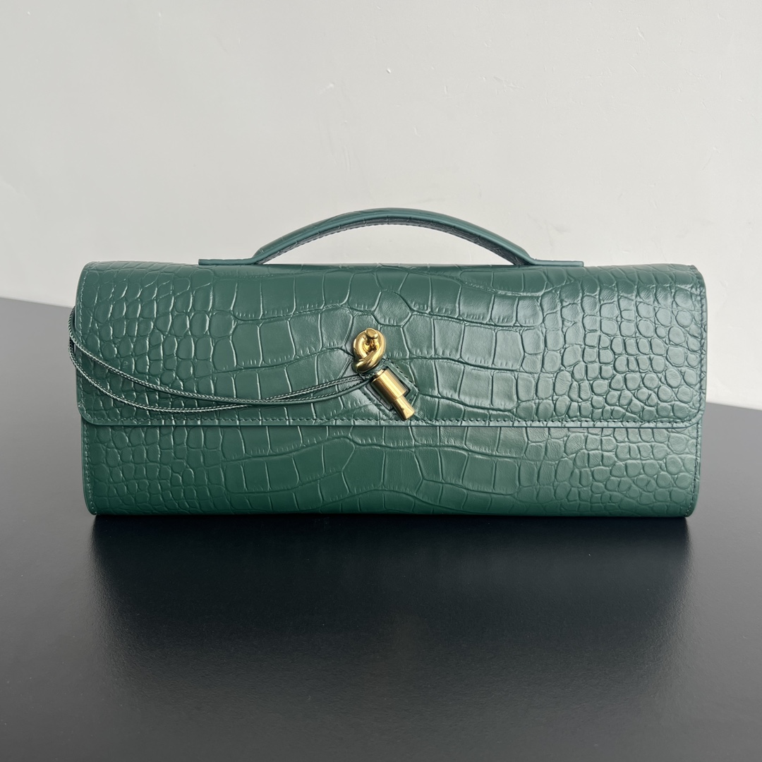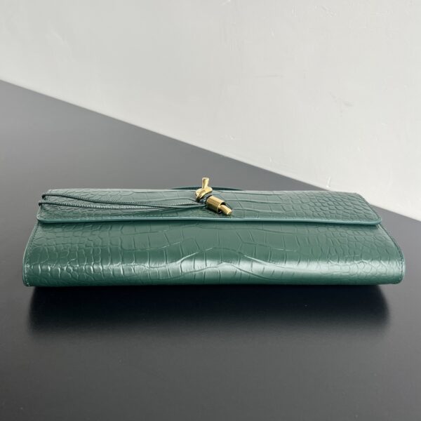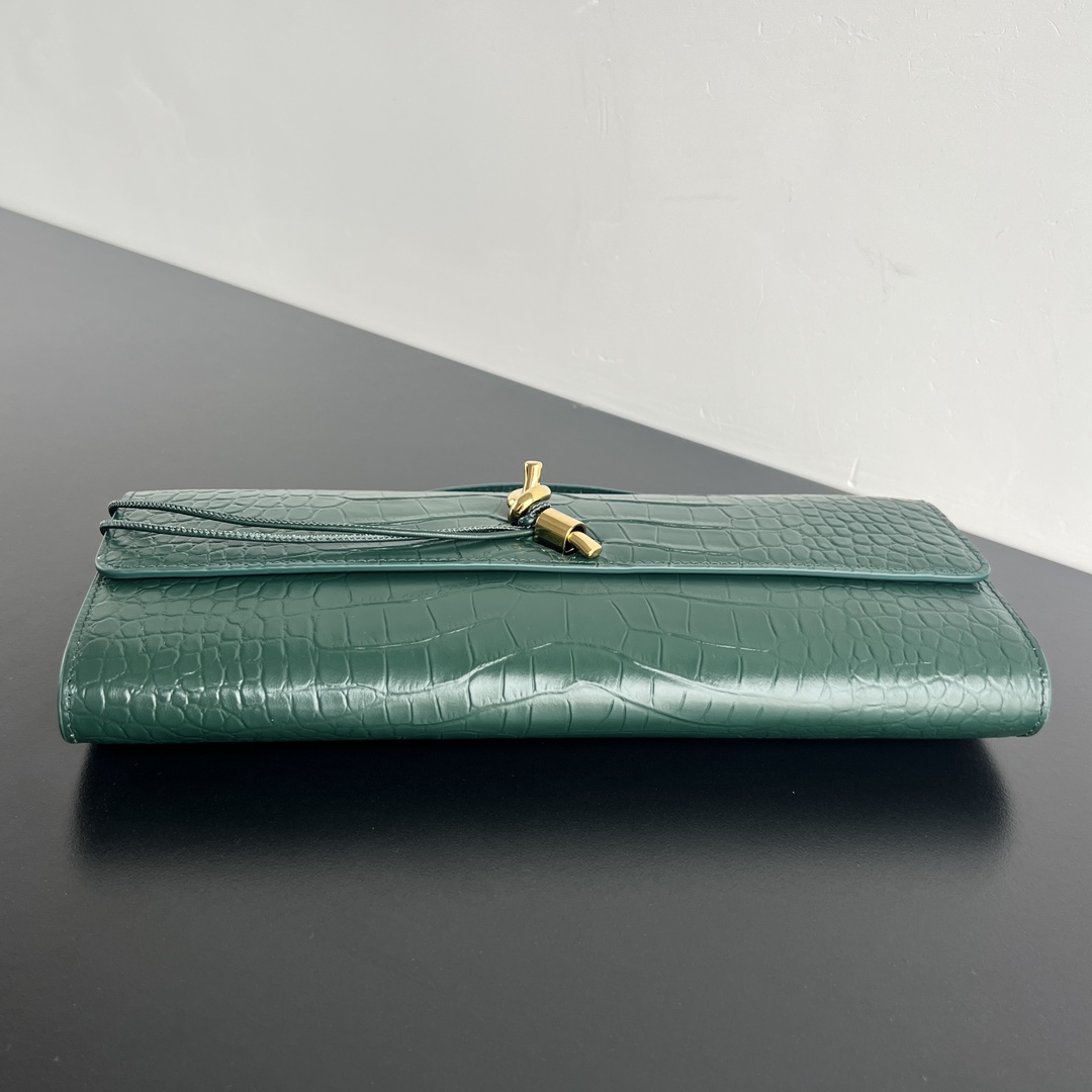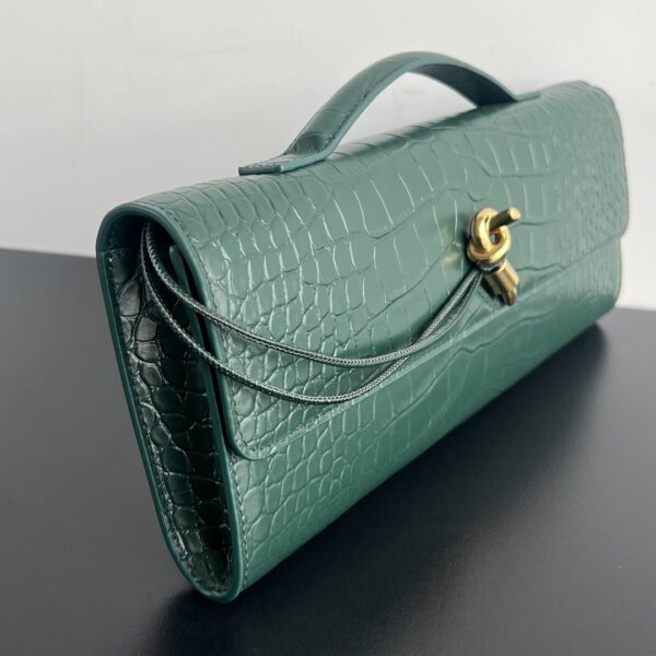 고급스러운 악어무늬가 돋보이는 클러치입니다. 정교한 인트레치아토 기법으로 제작된 양가죽 소재로, 부드러운 질감이 특징입니다.