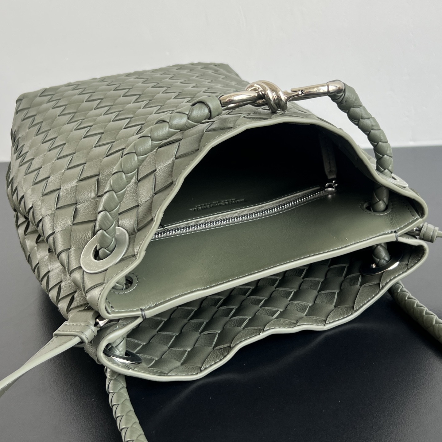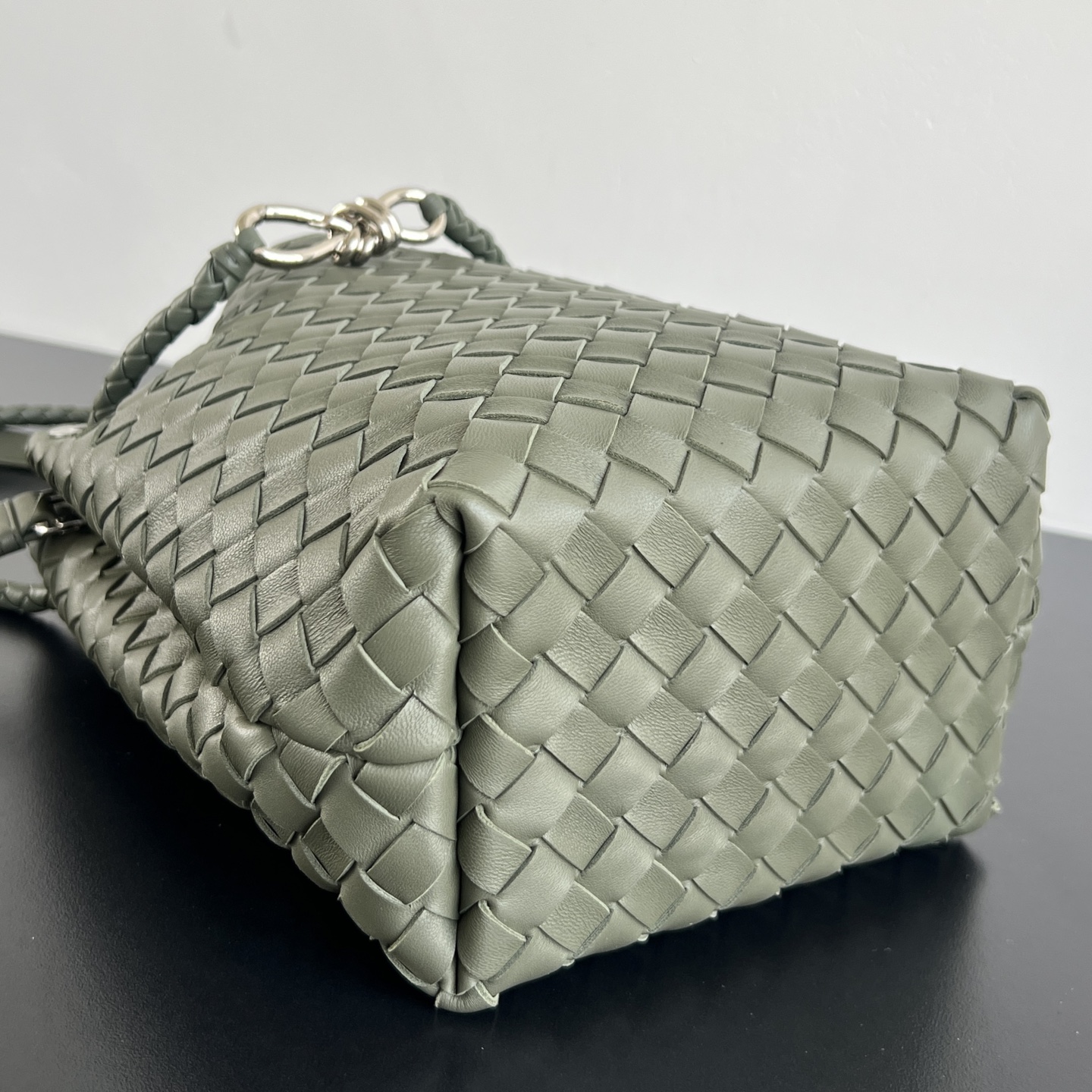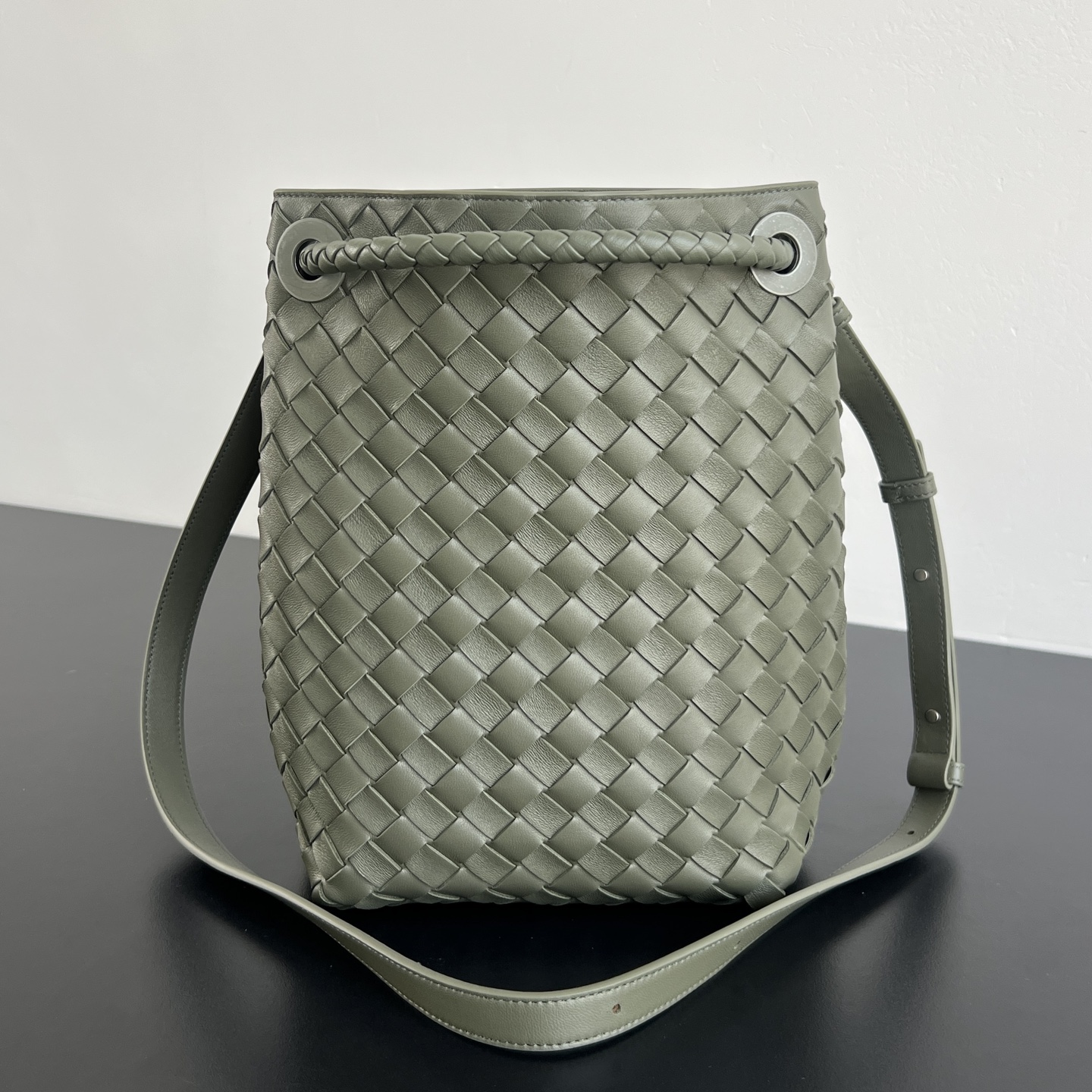안디아모 버킷 백은 디자인과 실용성을 모두 갖춘 아이템입니다. 클래식한 엮음 디자인과 섬세한 끈 매듭 디테일이 돋보이며, 고급스러운 느낌을 줍니다.