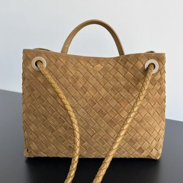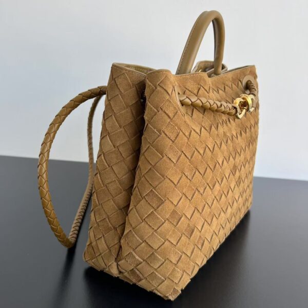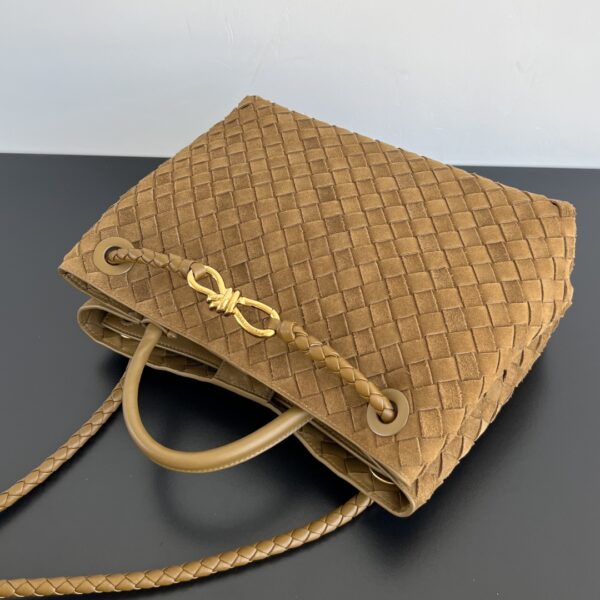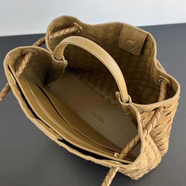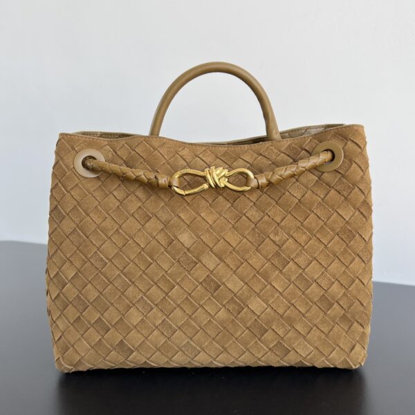 부드러운 질감의 소가죽으로 제작된 안디아모 토트백입니다. 고급스러운 느낌을 주며, 전체적으로 풍성한 디자인이 특징입니다.