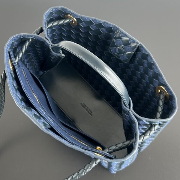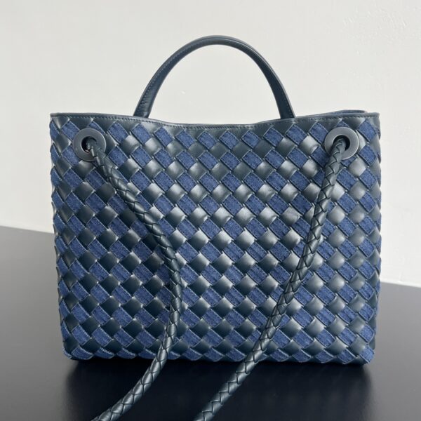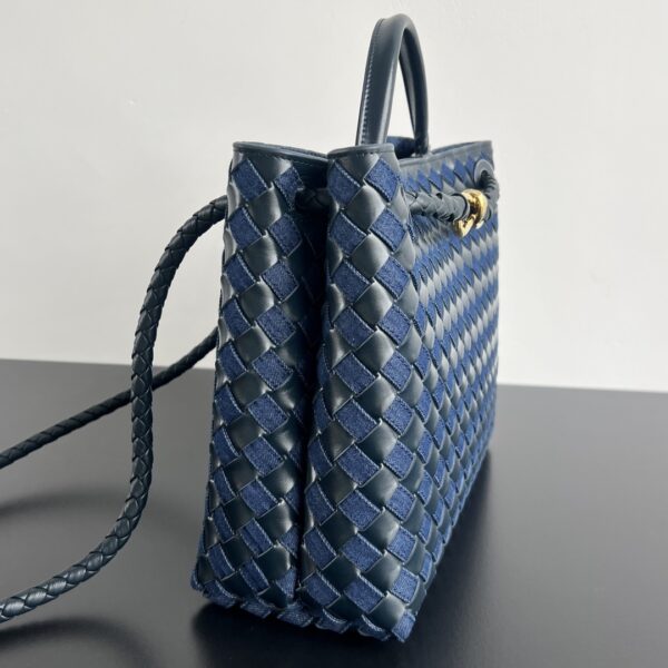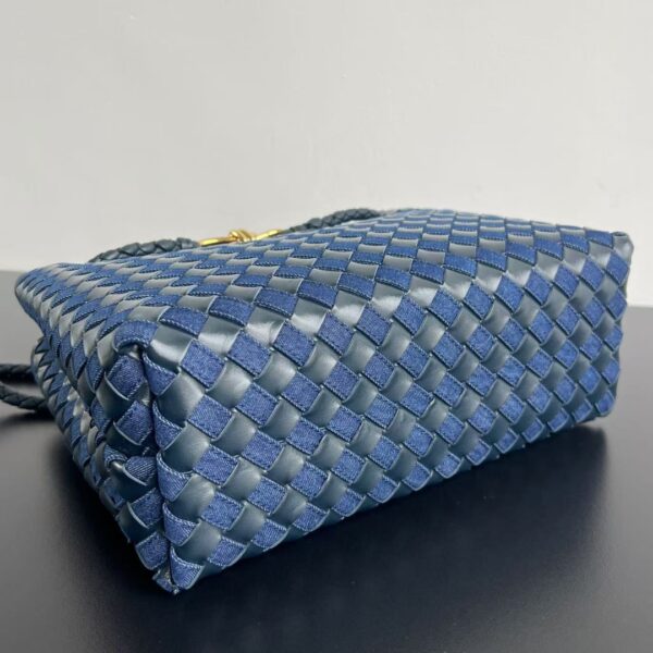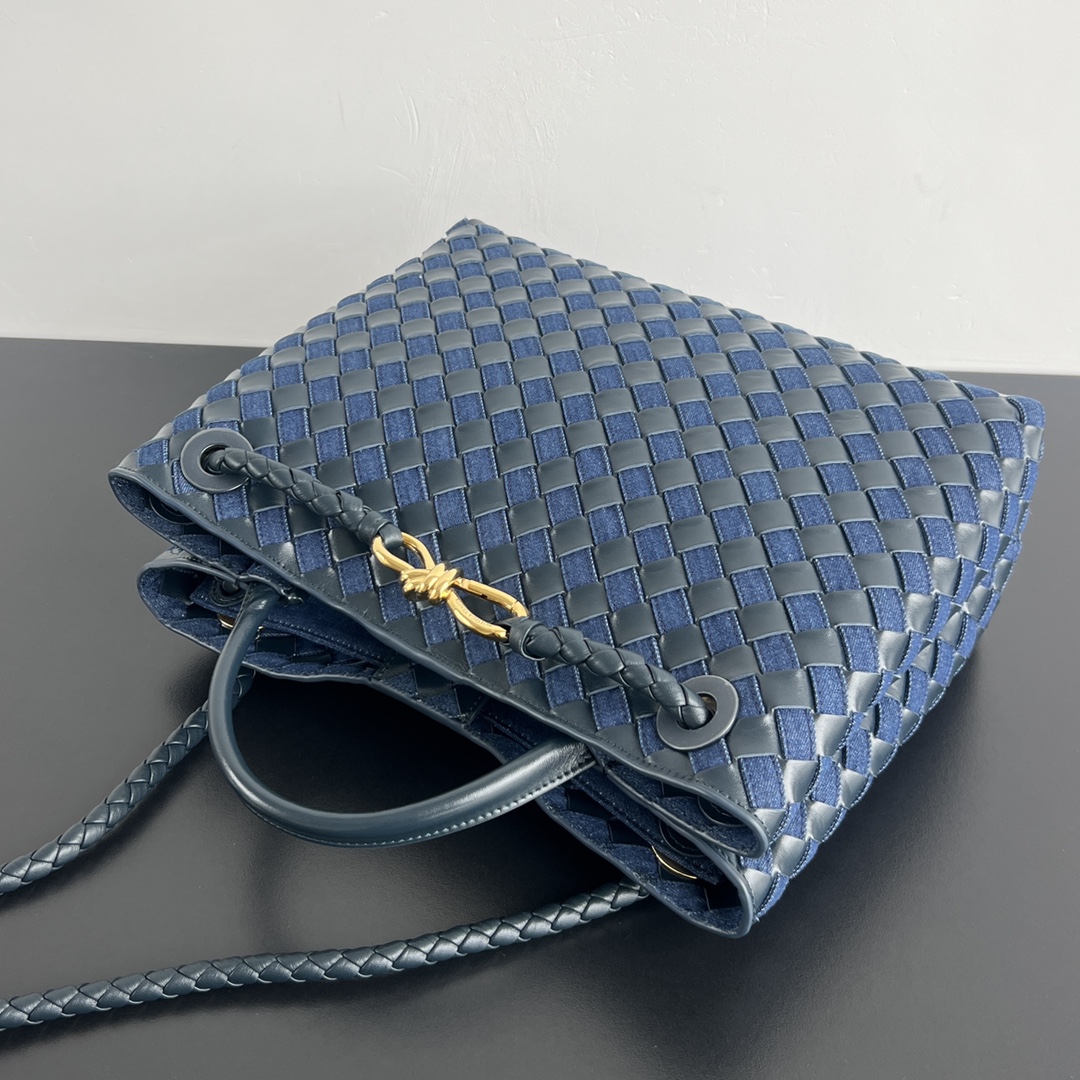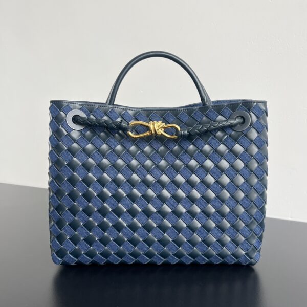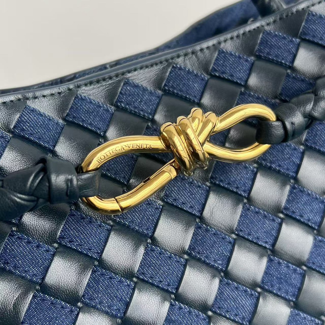 부드러운 소가죽과 견고한 데님 소재의 조합으로, 세련된 느낌을 더해줍니다. 손으로 직접 엮은 디테일이 돋보이며, 고급스러운 금속 장식이 포인트를 줍니다.