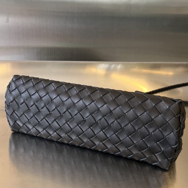 고급스러운 Nappa 양가죽으로 제작된 안디아모 손가방입니다. 부드럽고 편안한 착용감이 특징이며, 금색의 슬라이딩 메탈 끈으로 어깨끈 길이를 조절할 수 있어 다양한 스타일로 연출 가능합니다.