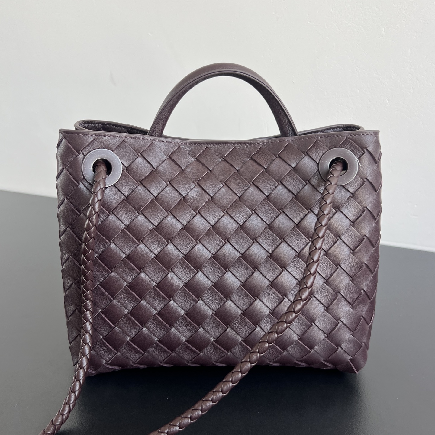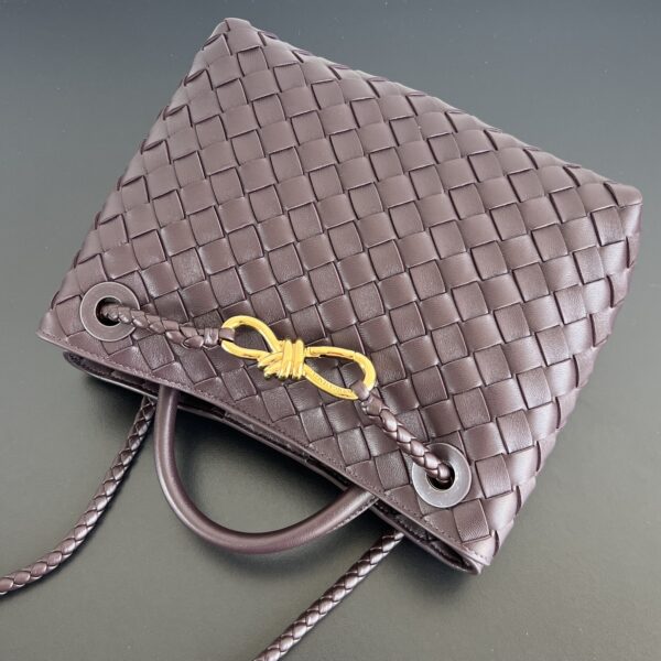 부드러운 나파 양가죽으로 제작된 안디아모 손가방입니다. 전체가 고급스러운 가죽으로 엮여져 있으며, 금색 스트랩이 포인트를 줍니다.