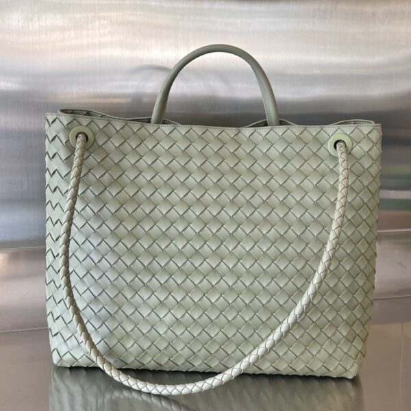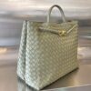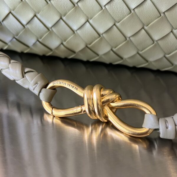 부드러운 나파 양가죽으로 제작된 클래식한 안디아모 손가방입니다. 전체가 편직된 디자인으로 고급스러움을 더하며, 골드 스트랩이 포인트를 줍니다.