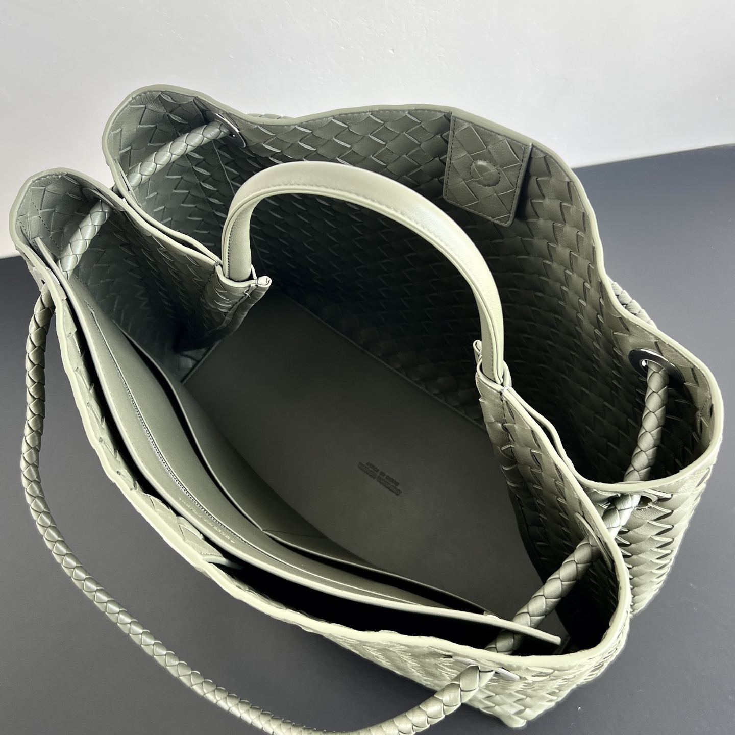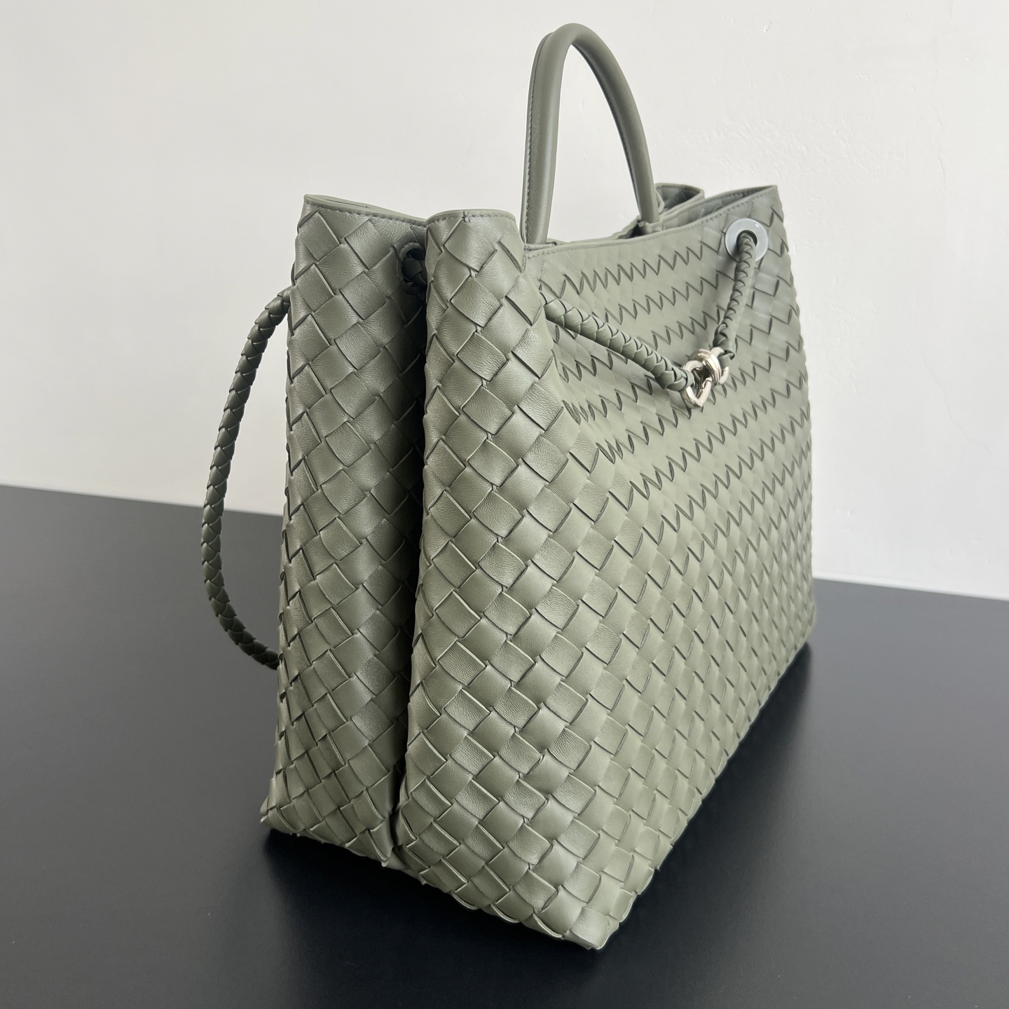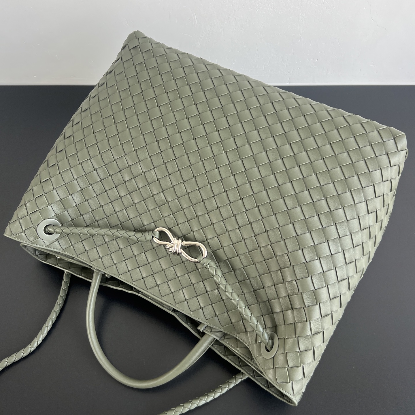 부드러운 나파 양가죽으로 제작된 이 가방은 편직 디자인이 매력적입니다.