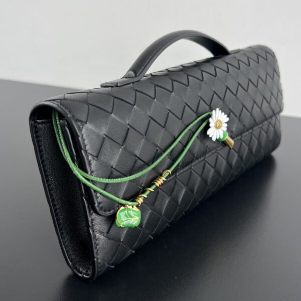 안디아모 클러치는 독특한 디자인으로 눈길을 사로잡습니다. 입체감 있는 꽃 모티프와 수작업으로 그려진 에나멜 장식이 더해져, 마치 진짜 꽃처럼 생동감 넘치는 느낌을 줍니다.