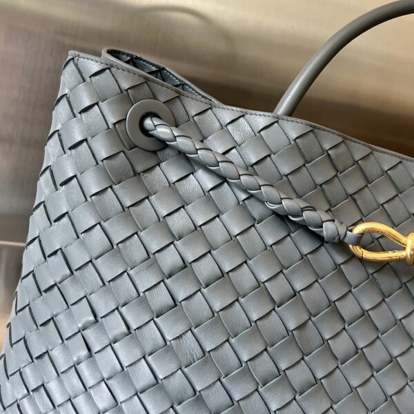 부드러운 나파 양가죽으로 제작된 안디아모 토트백입니다. 전체적으로 클래식한 가죽 엮음 디자인이 돋보이며, 금색의 슬라이딩 메탈 끈으로 어깨끈 길이를 조절할 수 있어 다양한 착용이 가능합니다.