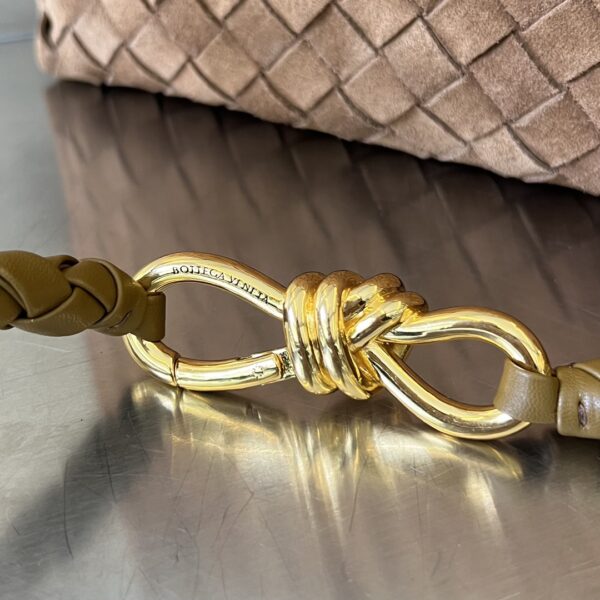 금색의 슬라이딩 메탈 끈으로 어깨끈 길이를 조절할 수 있어 다양한 착용 방식이 가능합니다. 단독으로 들거나, 어깨에 걸치거나, 크로스백으로 활용할 수 있어 실용적입니다.