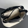 은색 하드웨어와 가죽으로 엮인 스트랩은 다양한 착용 방식을 제공합니다. 가벼운 무게감과 여유로운 디자인으로 여러 상황에서 활용하기 좋습니다.