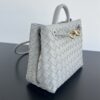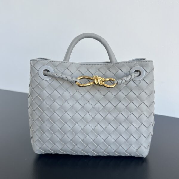 부드러운 나파 양가죽으로 제작된 안디아모 핸드백입니다. 전체적으로 클래식한 가죽 엮임 디자인이 돋보이며, 금색의 슬라이딩 메탈 끈으로 어깨끈 조절이 가능합니다.