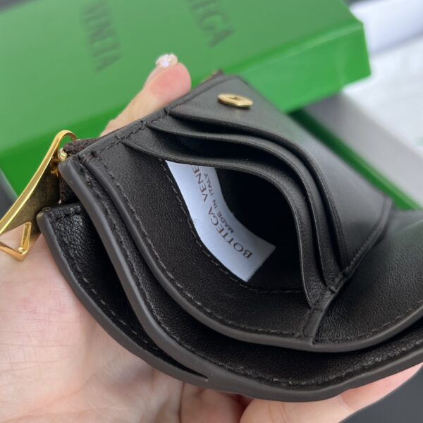 보테가의 엮음 디자인 더블 폴드 지퍼 지갑은 우아하고 세련된 스타일로, 클래식한 디자인과 실용성을 완벽하게 결합했습니다.