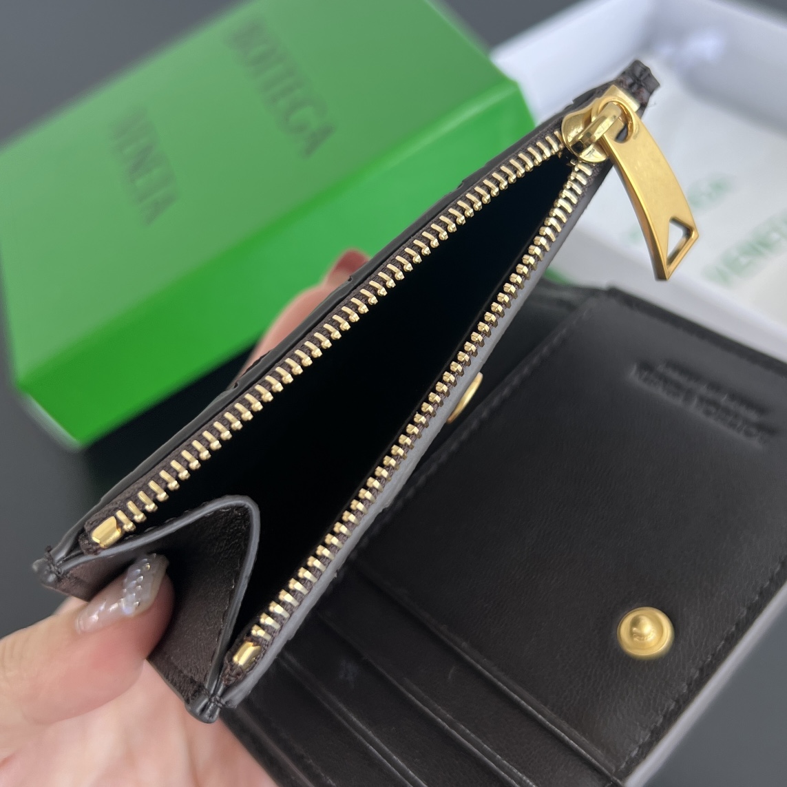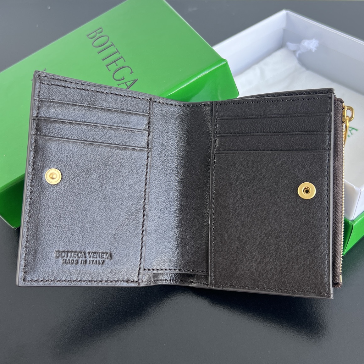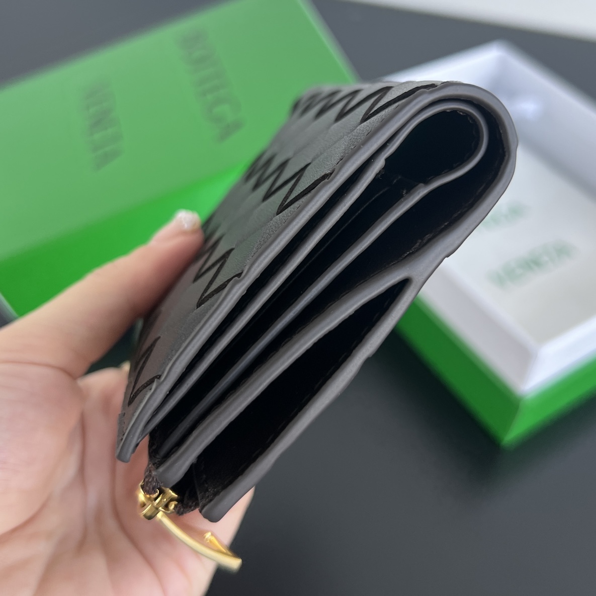 보테가의 엮음 디자인 더블 폴드 지퍼 지갑은 우아하고 세련된 스타일로, 클래식한 디자인과 실용성을 완벽하게 결합했습니다.