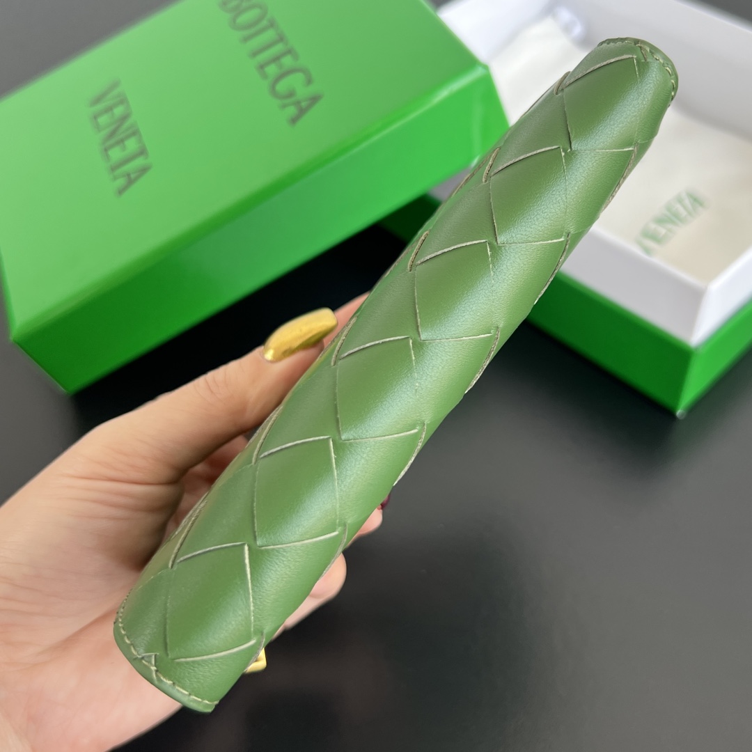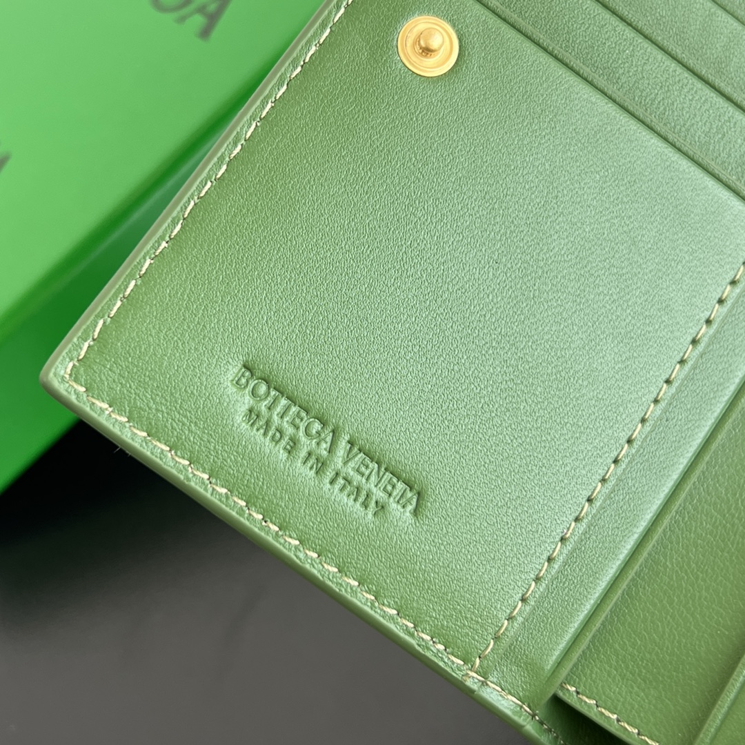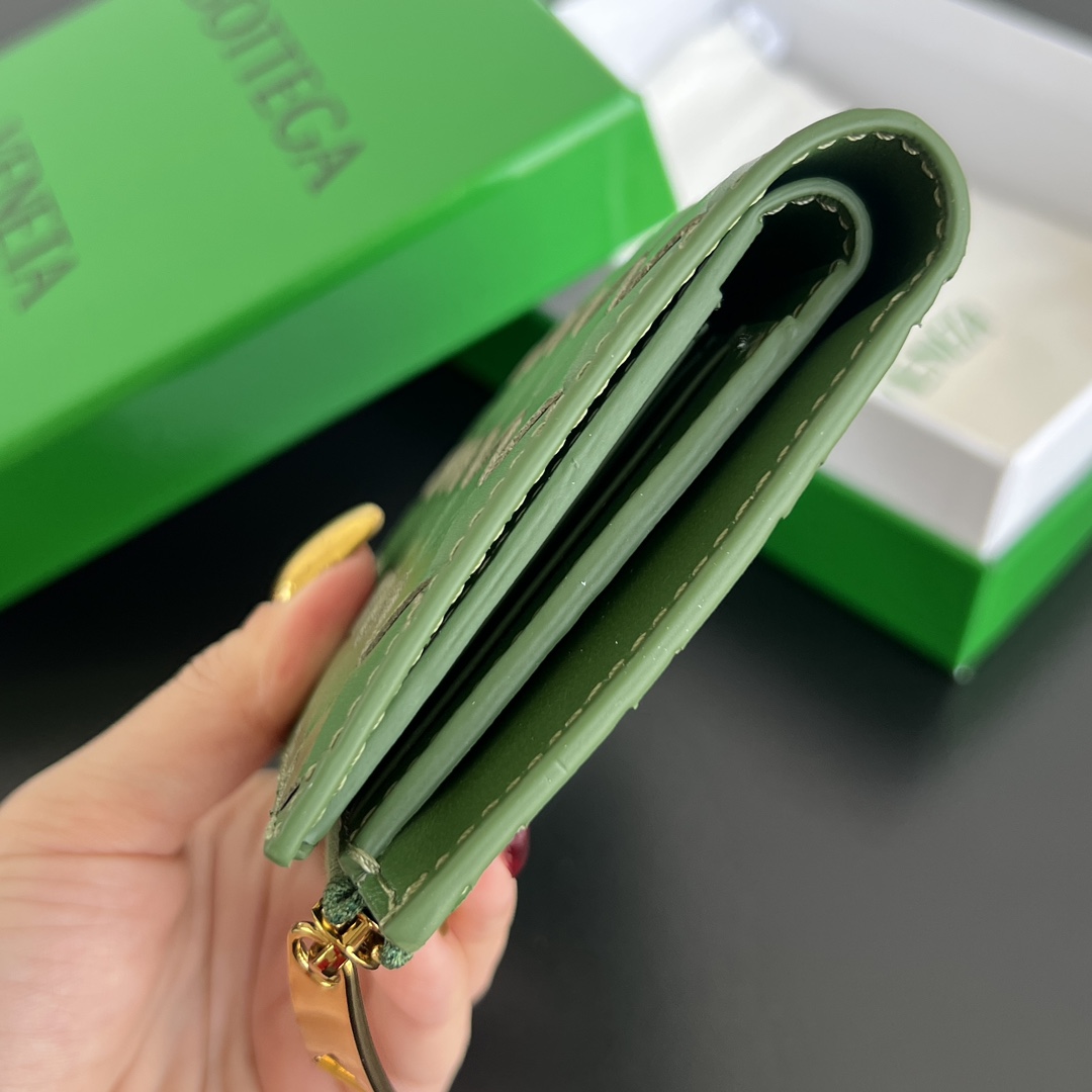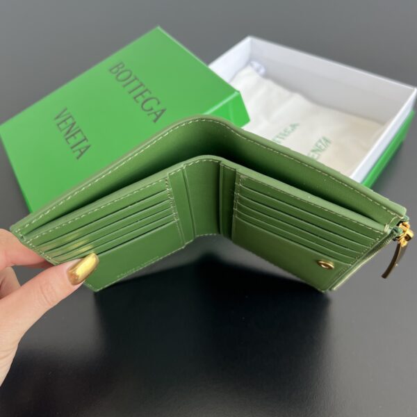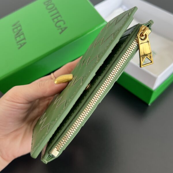 보테가의 엮인 더블폴드 지퍼 지갑은 우아하고 세련된 디자인으로, 클래식한 요소와 실용성을 완벽하게 조화시켰습니다.