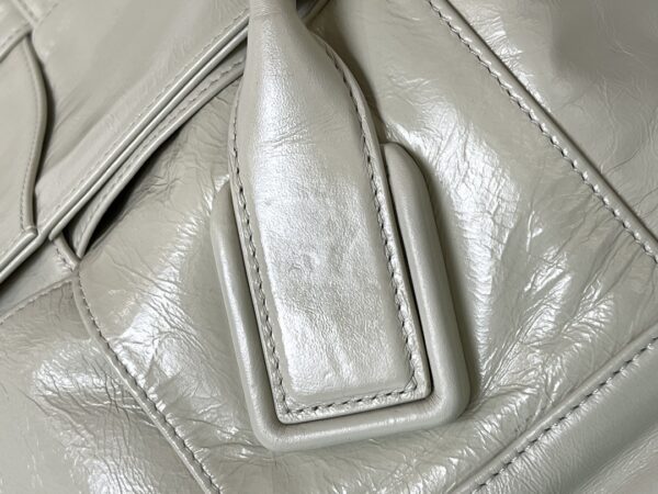 부드러운 질감의 오일 왁스 가죽으로 제작된 손잡이 백입니다.