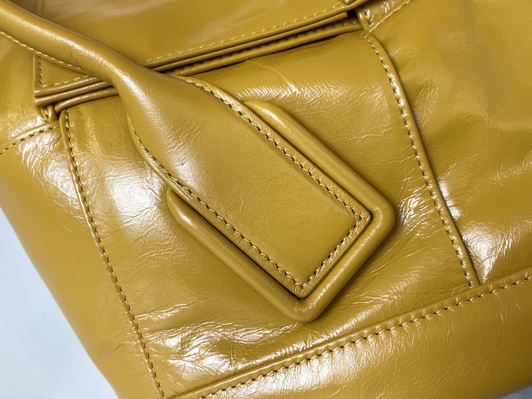 부드러운 질감의 오일 왁스 가죽으로 제작된 손잡이 백입니다.