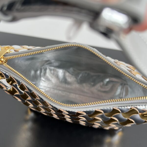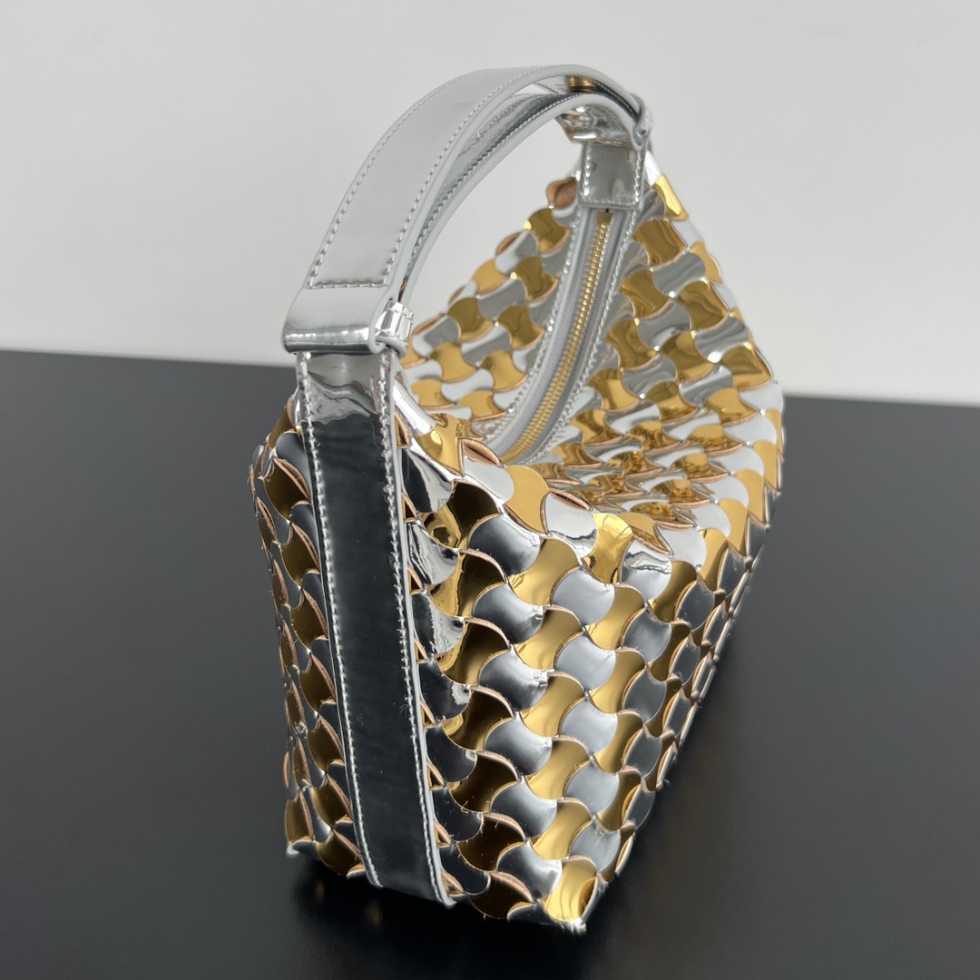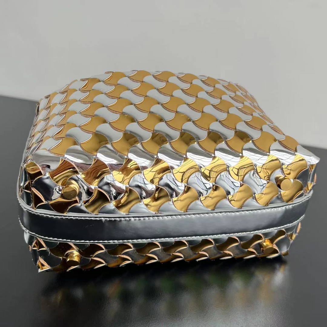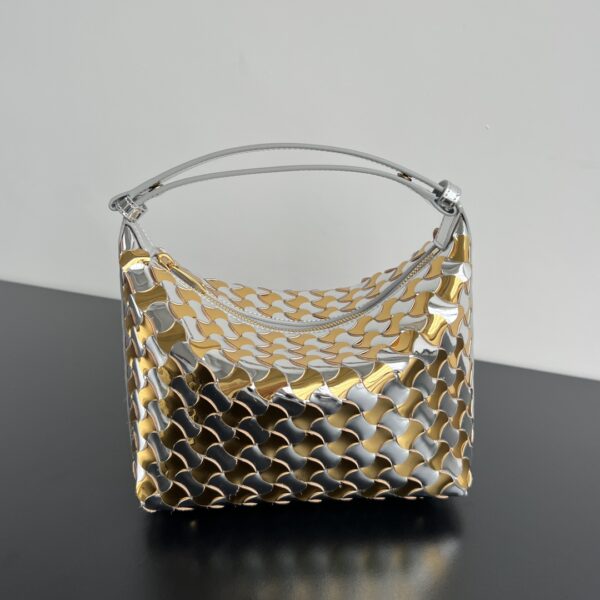 보테가의 월리스 숄더백은 반짝이는 비늘 디자인으로 시선을 사로잡습니다.