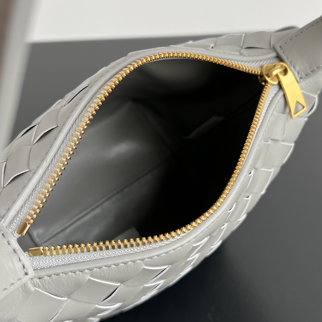 보테가의 아이코닉한 인트레치아토(엮기) 기법으로 완성된 월리스 숄더백입니다.