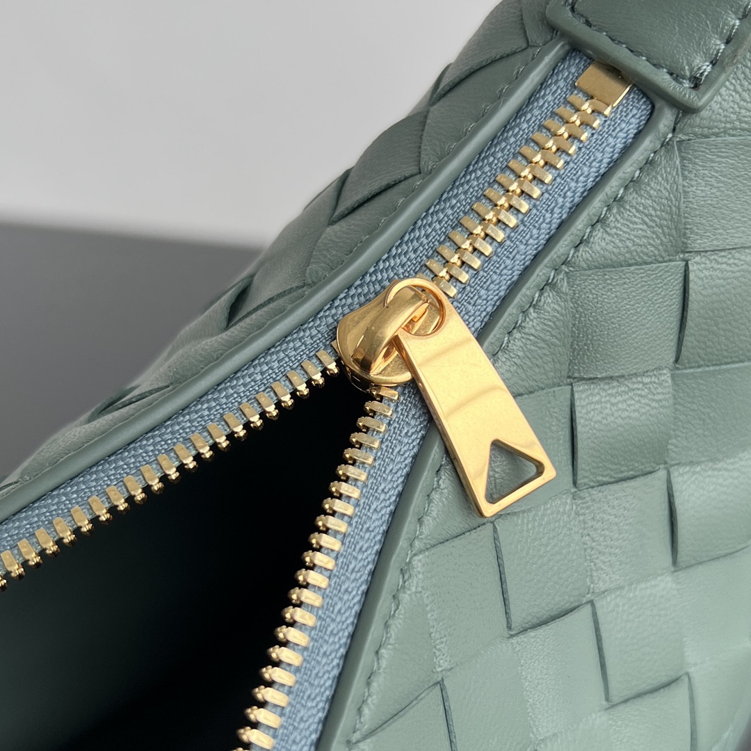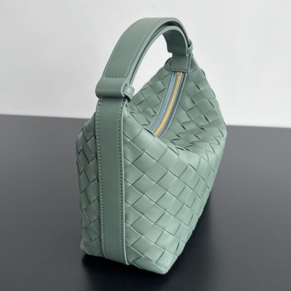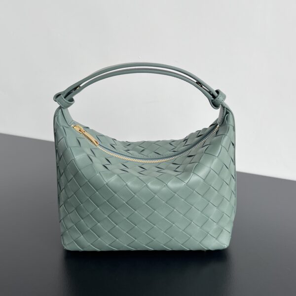 보테가의 아이코닉한 인트레치아토(엮인) 디자인으로 제작된 월리스 숄더백입니다.