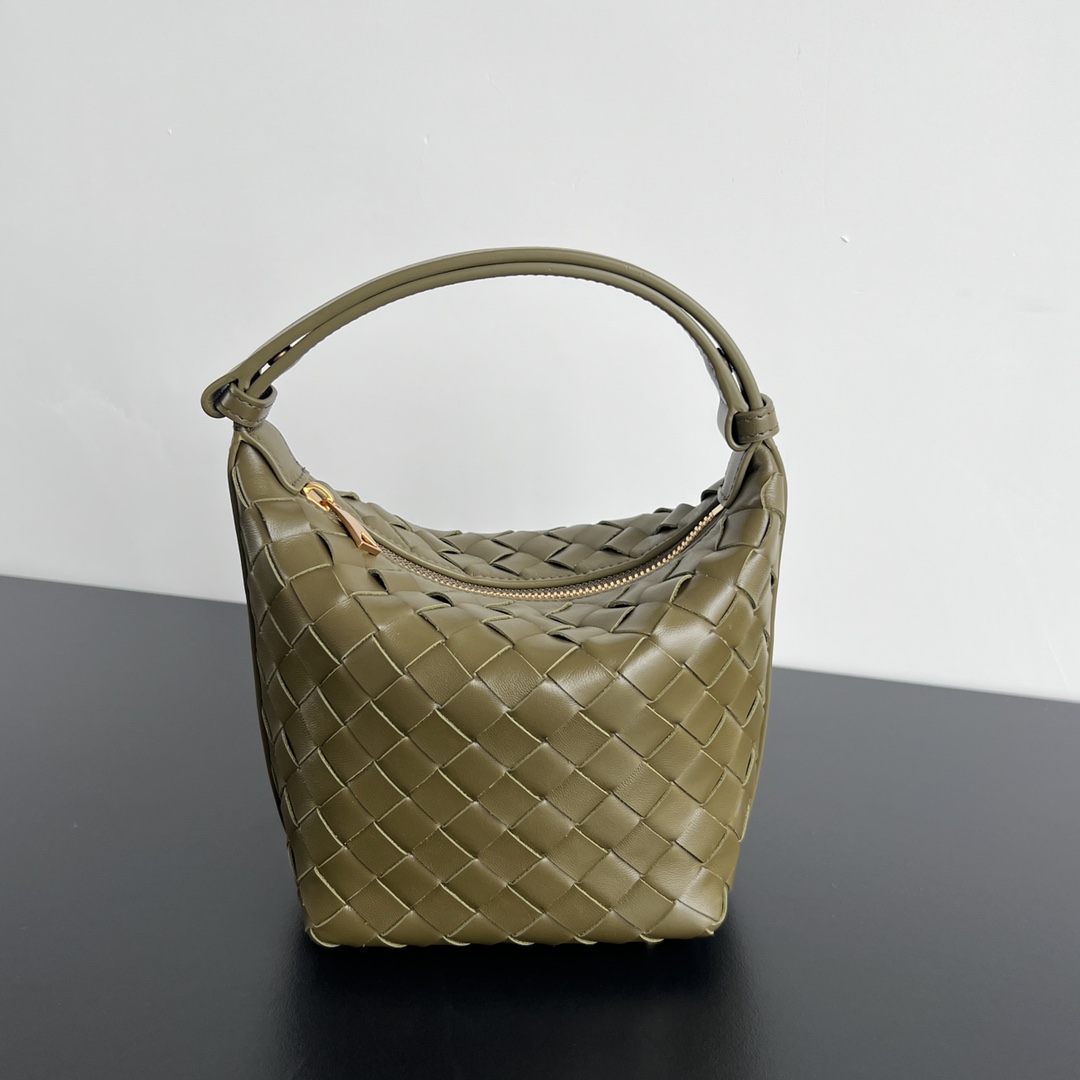 보테가의 인트레치아토 기법으로 제작된 미니 백입니다. 고급 소가죽 소재로 광택이 뛰어나며, 귀여운 디자인이 매력적입니다.