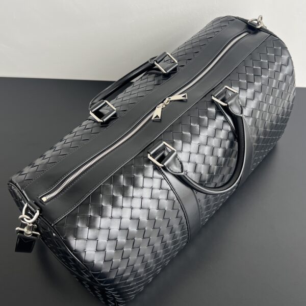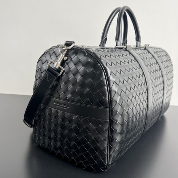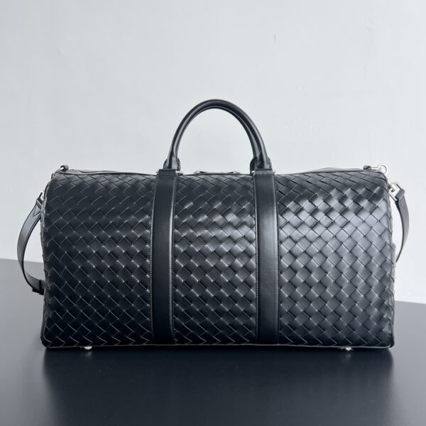 보테가의 인트레치아토 여행 가방은 뛰어난 품질과 넉넉한 수납 공간을 자랑합니다. 부드러운 소가죽으로 제작되어 고급스러운 질감을 느낄 수 있으며, 매끄러운 터치감이 특징입니다.