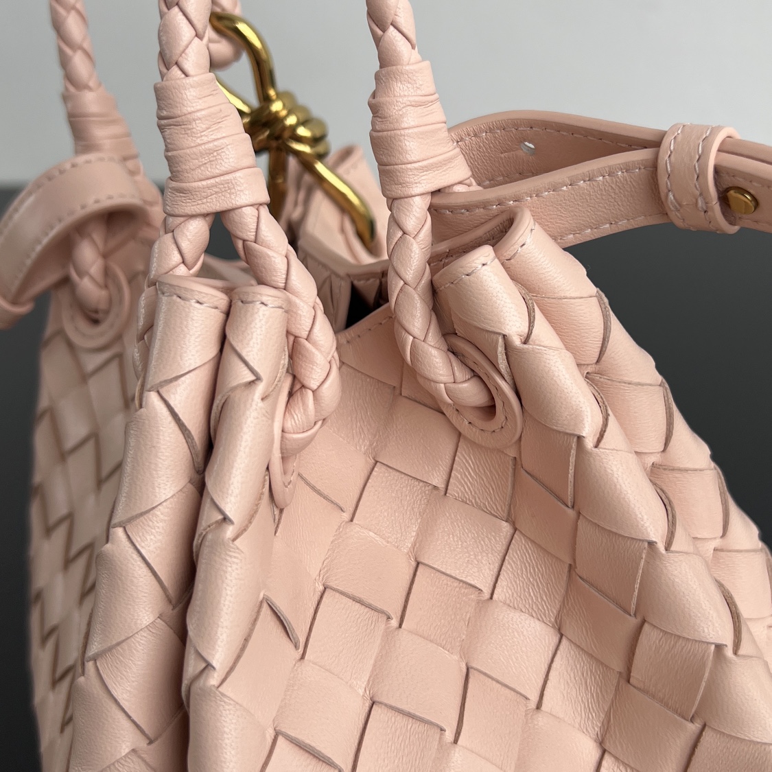 부드러운 인트레치아토 웨빙 가죽으로 제작된 숄더백입니다.