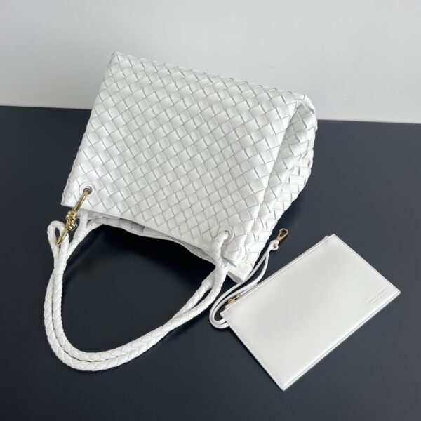 보테가의 인트레치아토 위빙 가죽 숄더백은 독특한 디자인으로 눈길을 사로잡습니다. 부드러운 가죽 소재로 제작되어 고급스러운 질감을 느낄 수 있으며, 다양한 스타일에 잘 어울립니다.