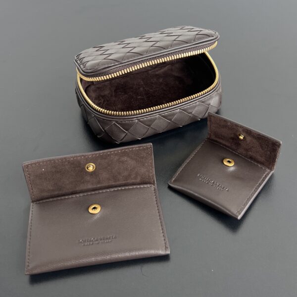 지퍼로 간편하게 여닫을 수 있으며, 내부에는 두 개의 주얼리 포켓이 있어 다양한 액세서리를 안전하게 보관할 수 있습니다.