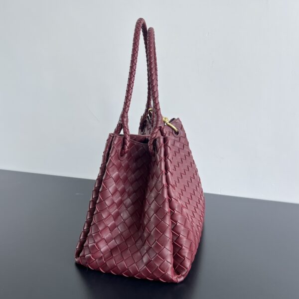 보테가의 인트레치아토 편직 가죽 숄더백은 독특한 디자인으로 시선을 사로잡습니다.