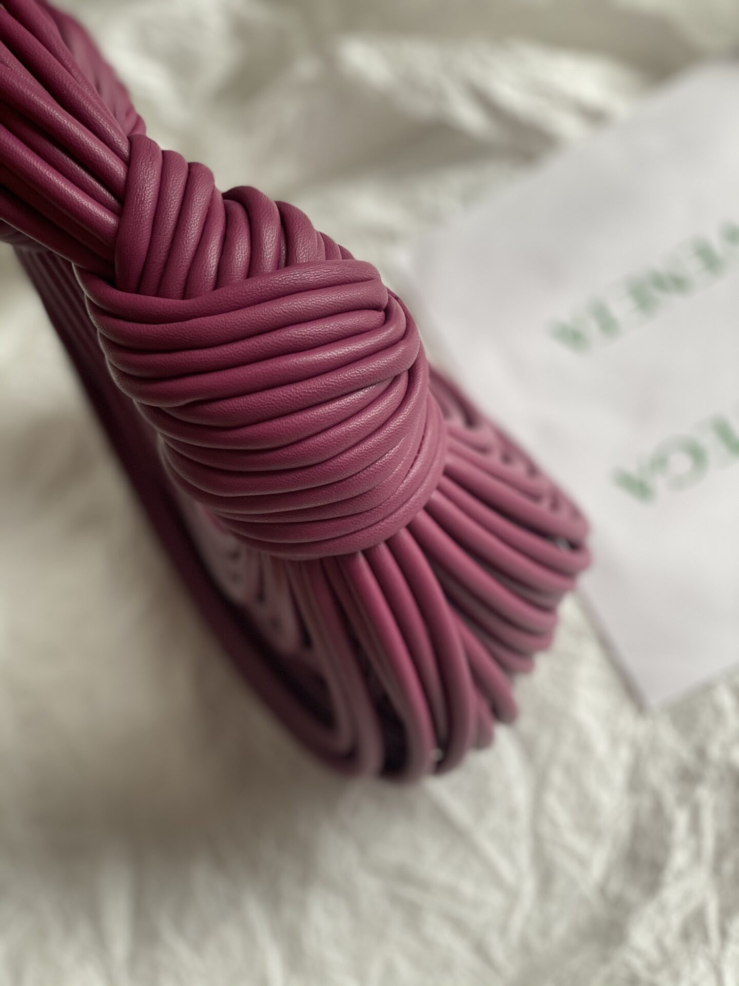 부드러운 양가죽으로 제작된 조디 손잡이 파우치는 독특한 디자인이 돋보입니다.