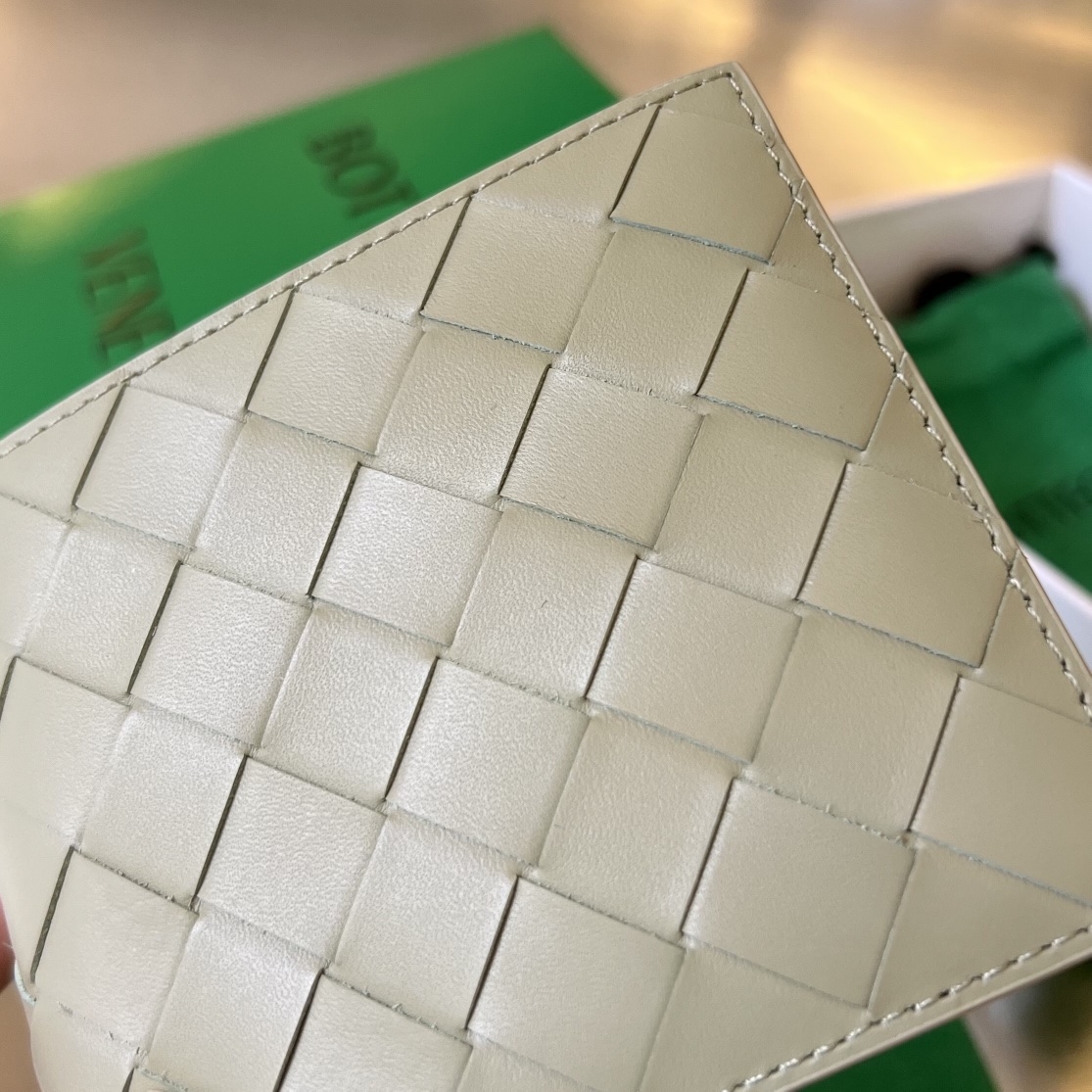 고급스러운 편직 디자인의 단지갑입니다.