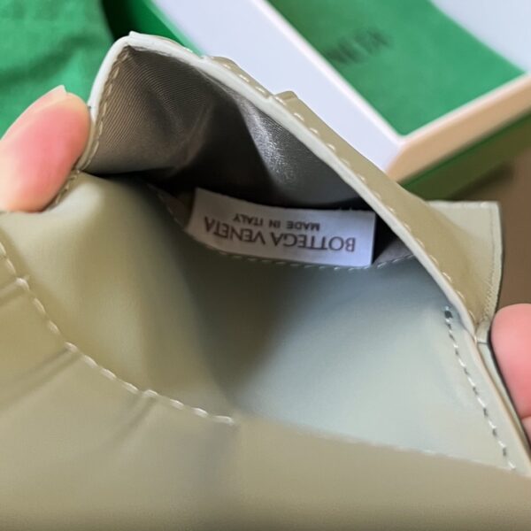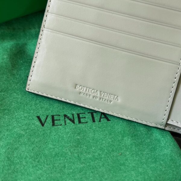 고급스러운 손길을 느낄 수 있는 보테가의 중간 너비 편직 단지갑입니다.