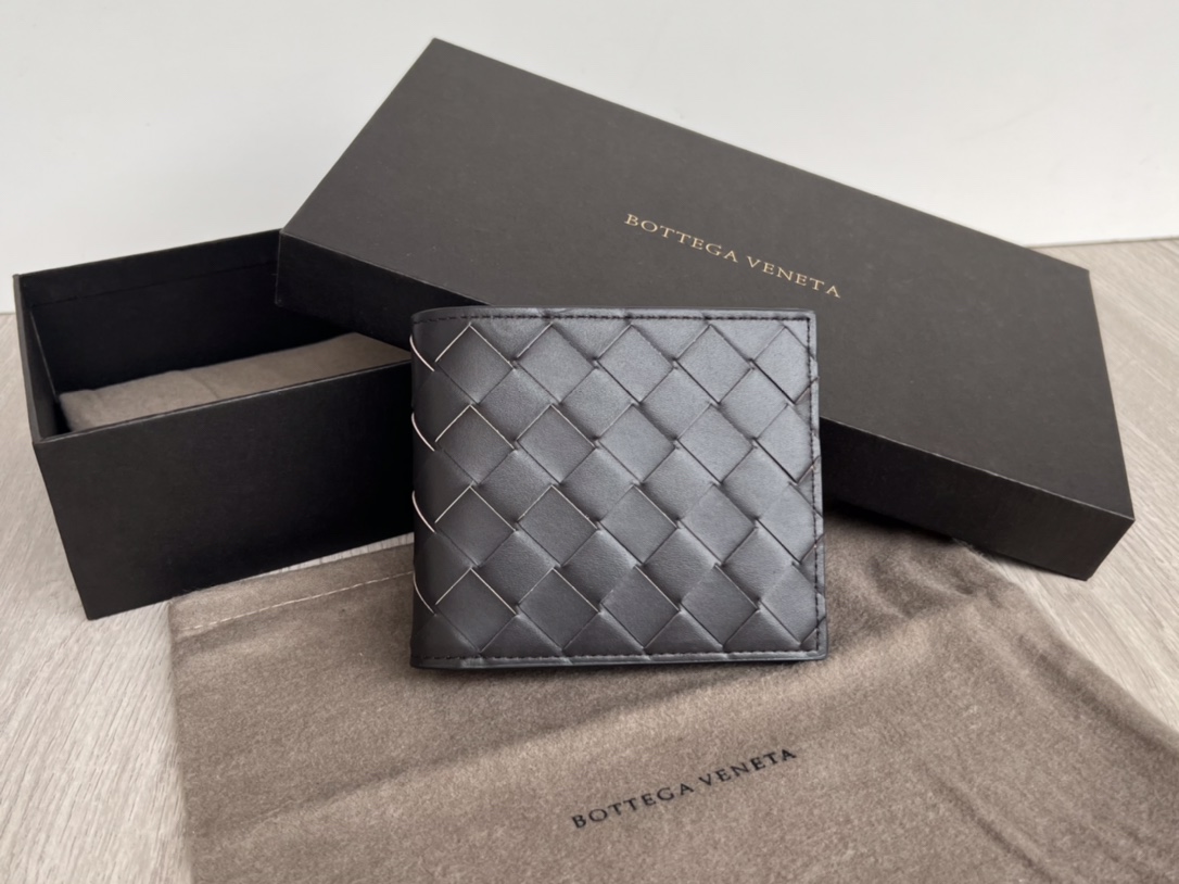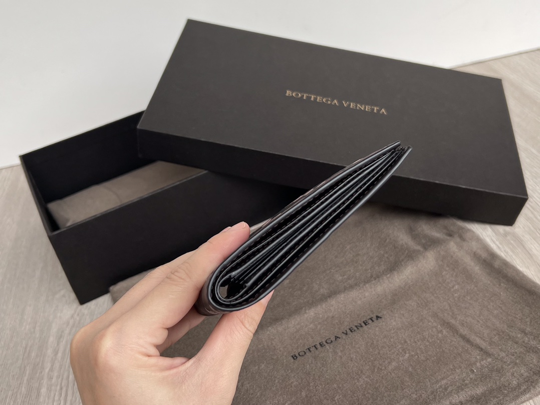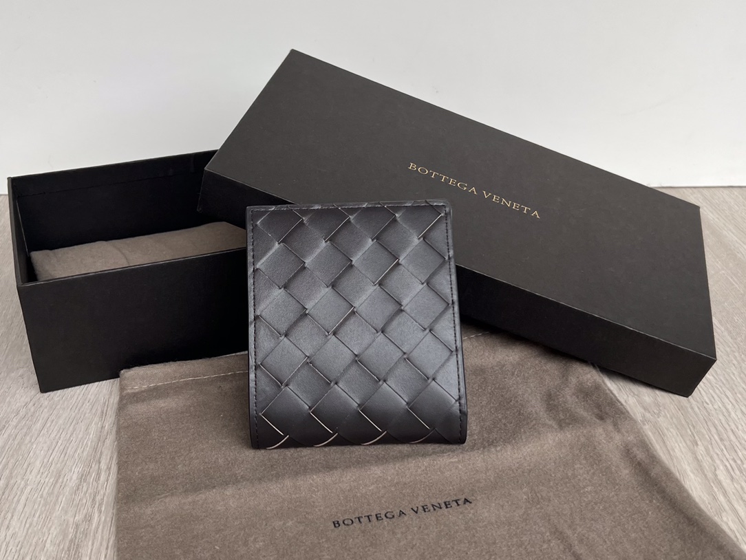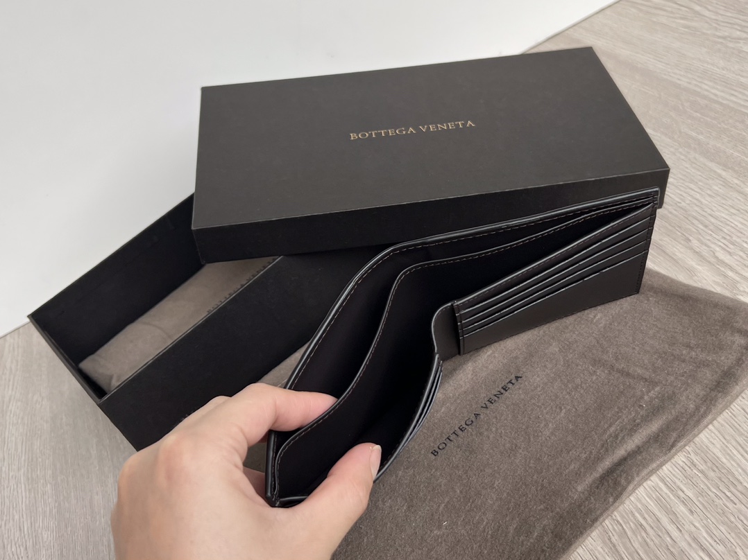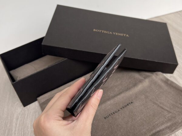 보테가 (징) 중간 폭 편직 단지갑 블랙 605721