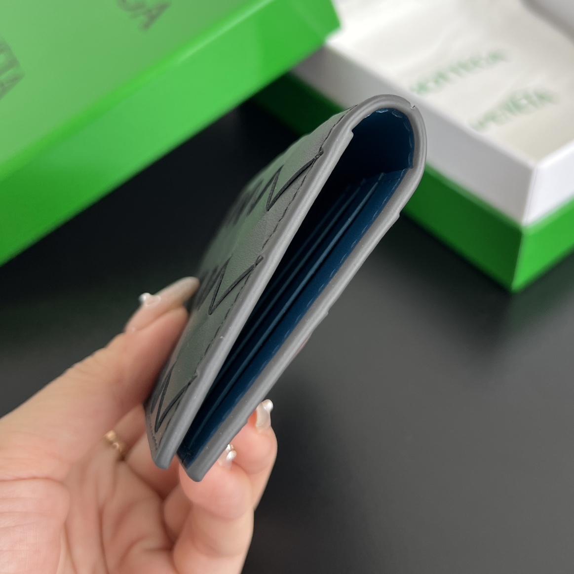 부드러운 소가죽으로 제작된 중편格 카드 지갑입니다.
