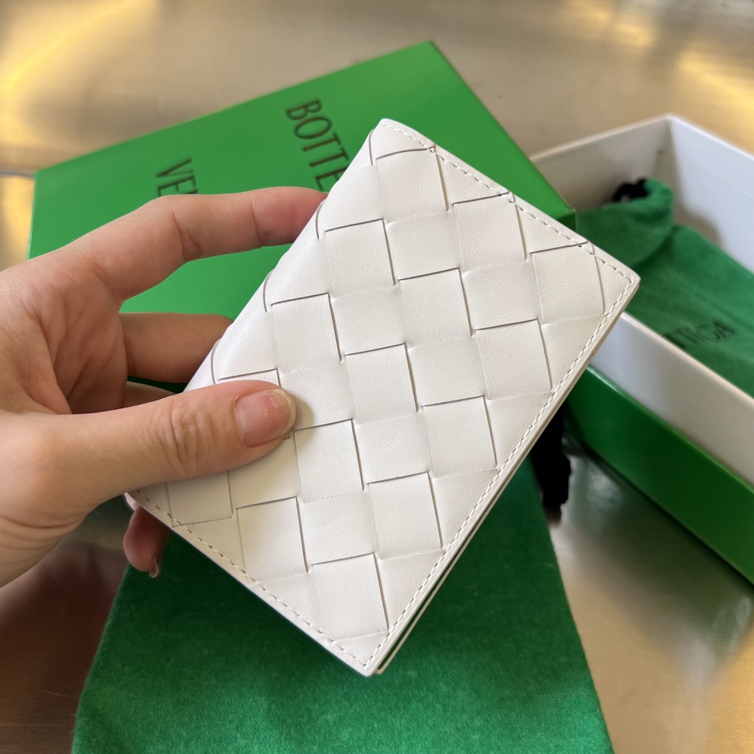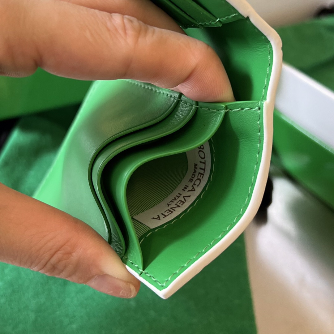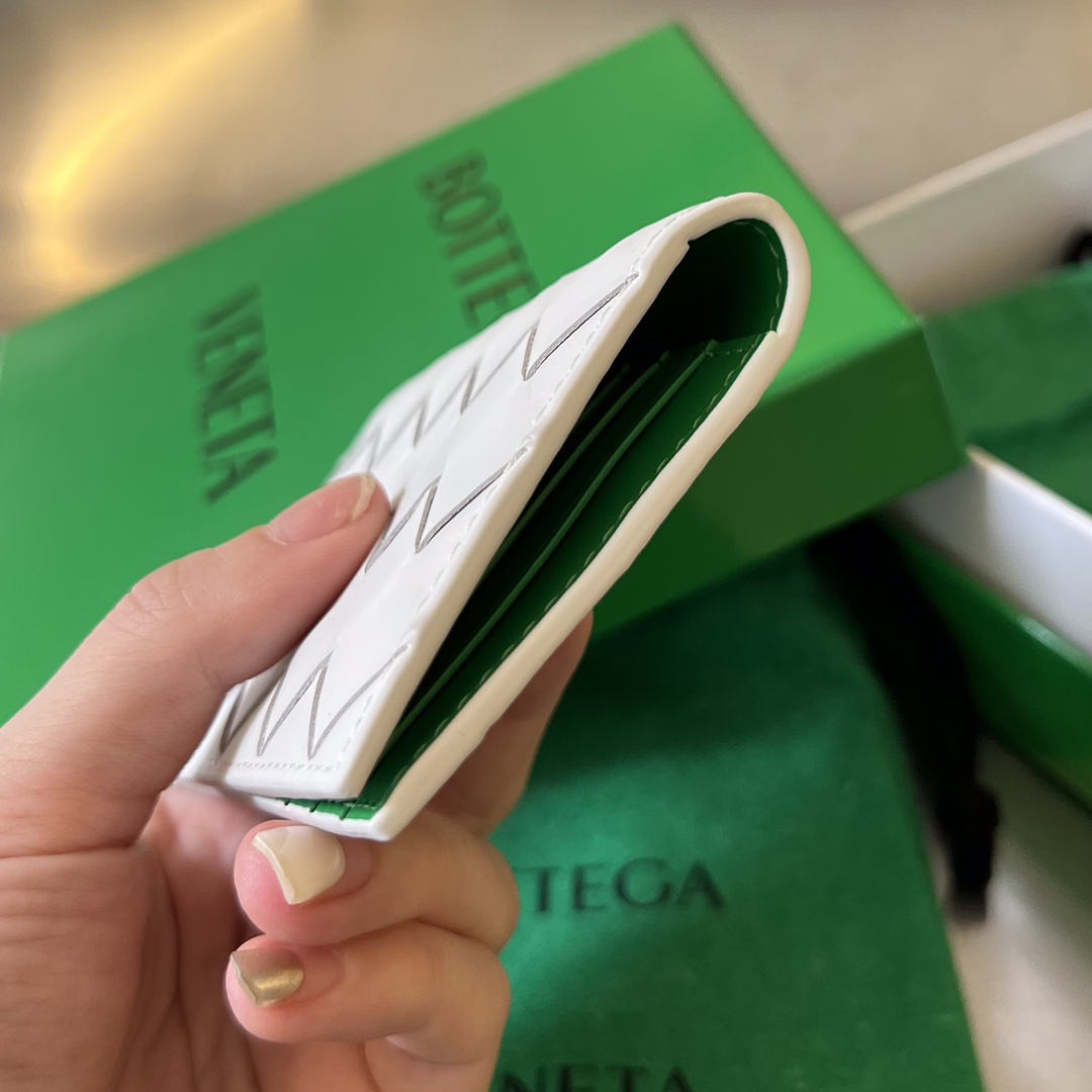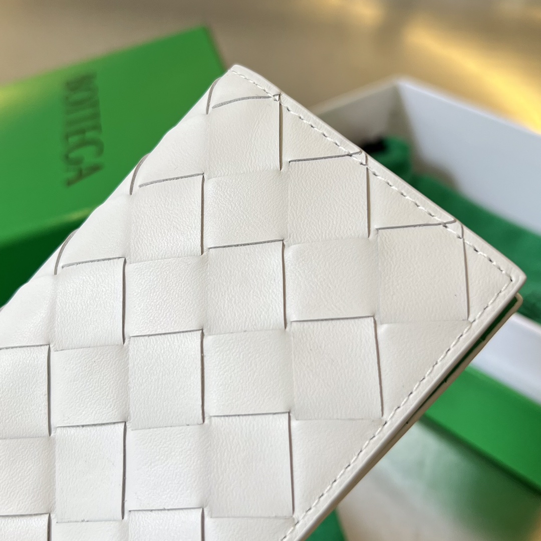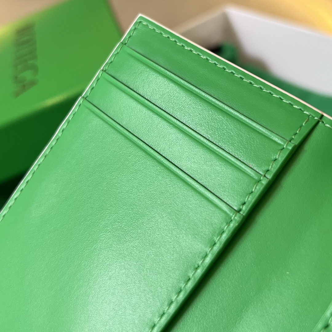 부드러운 소가죽으로 제작된 보테가의 중편 그립 카드 지갑입니다.