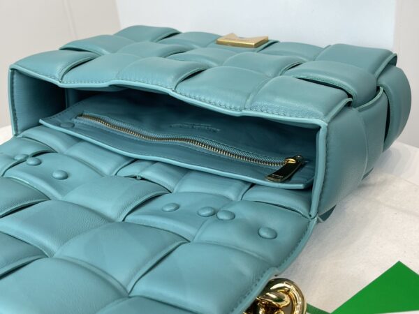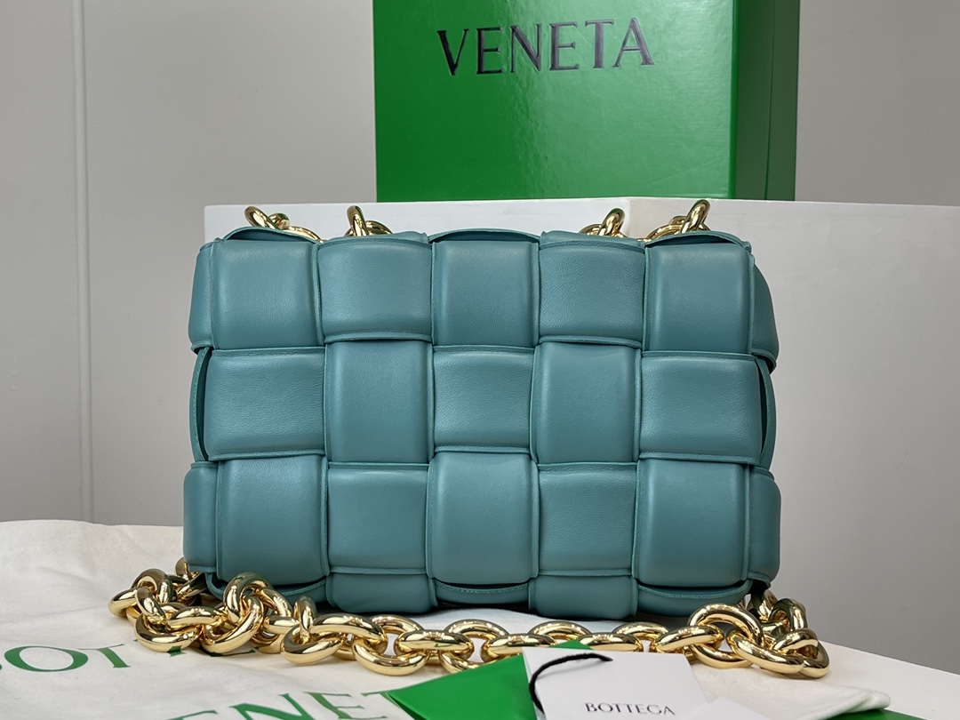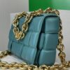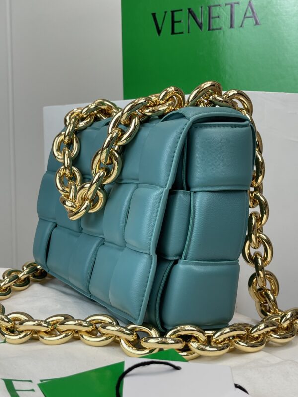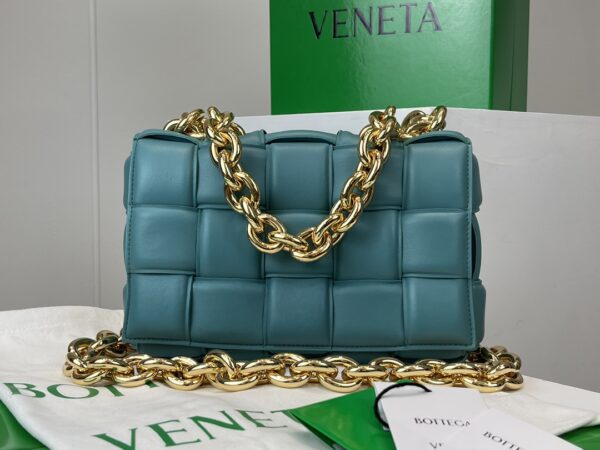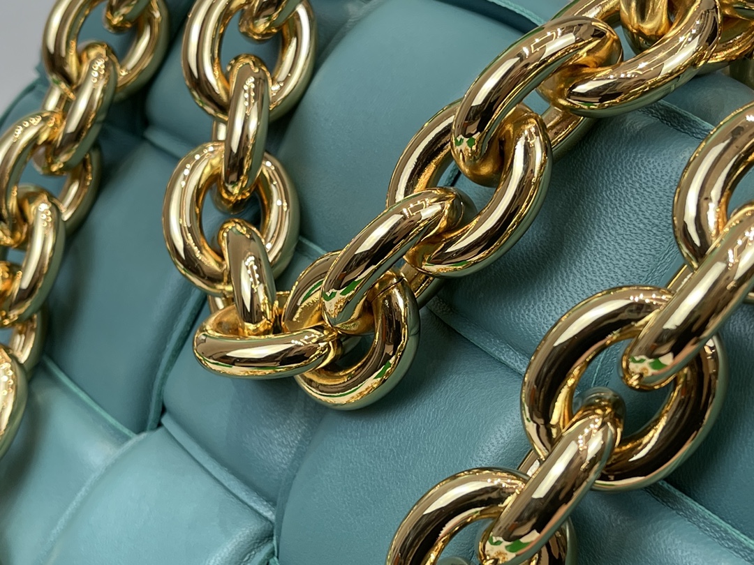 세련된 블루 컬러가 돋보이며, 고급스러운 체인 스트랩이 포인트입니다.