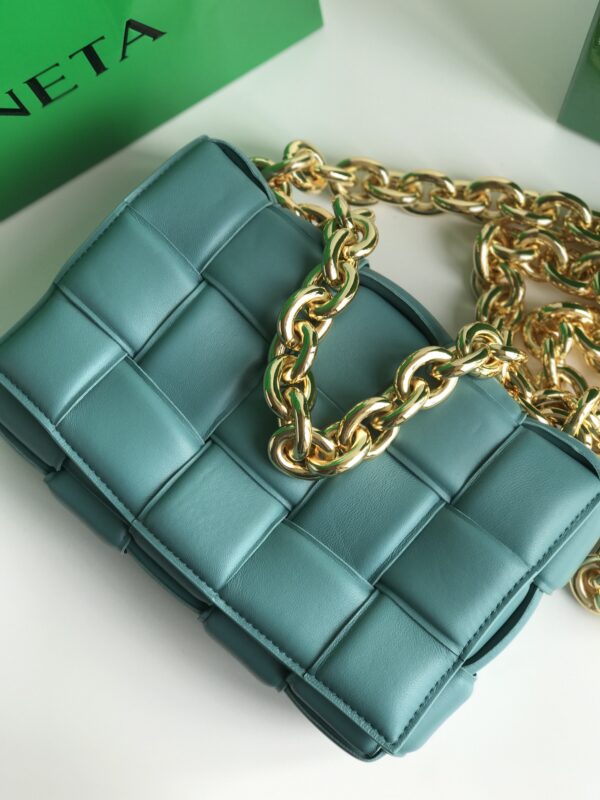 보테가의 체인 카세트 백은 독특한 디자인과 세련된 색감이 돋보입니다.