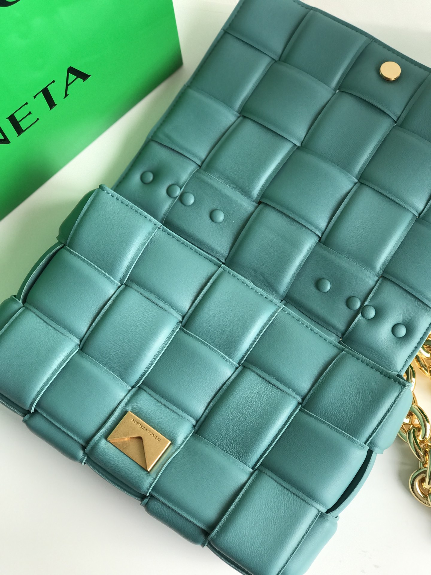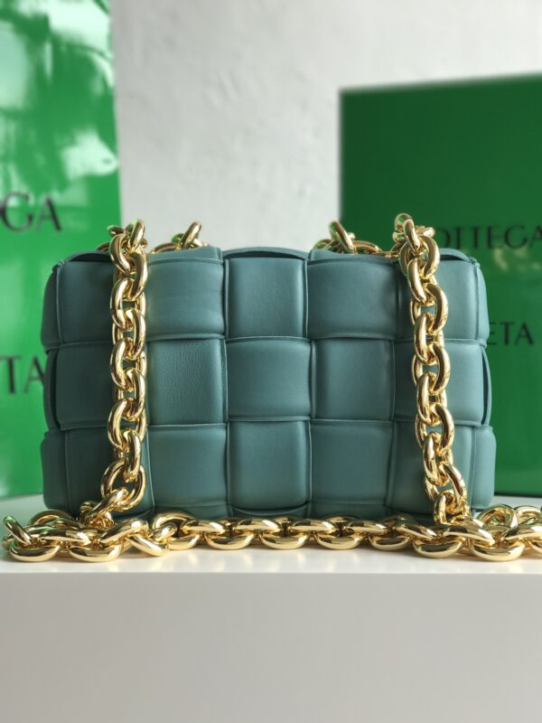 보테가의 체인 카세트 백은 독특한 디자인과 세련된 색감이 돋보입니다.